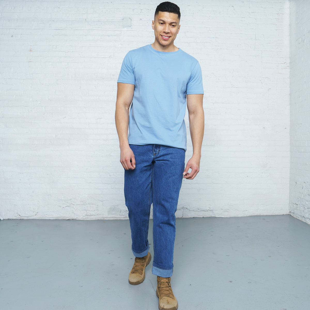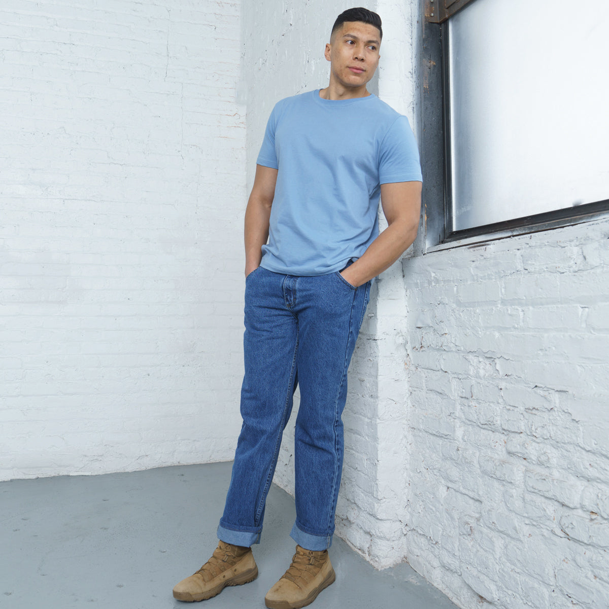 Durable jeans that last. Relaxed fit in 100% cotton. Roomier in the seat and thighs. 18" Bottom opening.