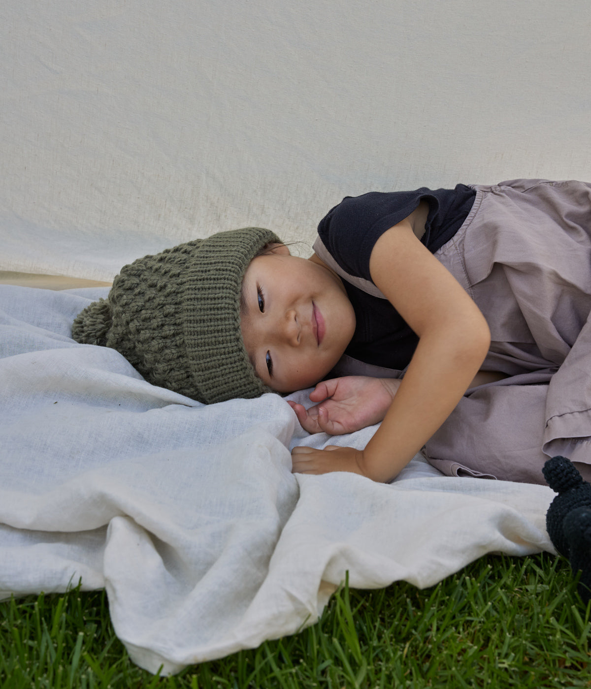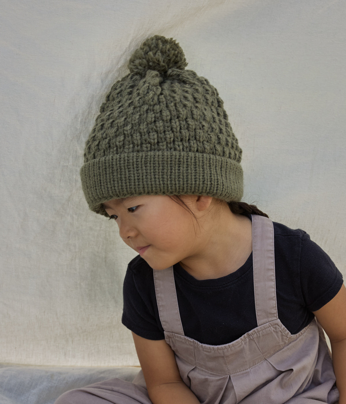 This hand-knit pom beanie is the adorable look does the impossible... it makes your kids even cuter than they already are.