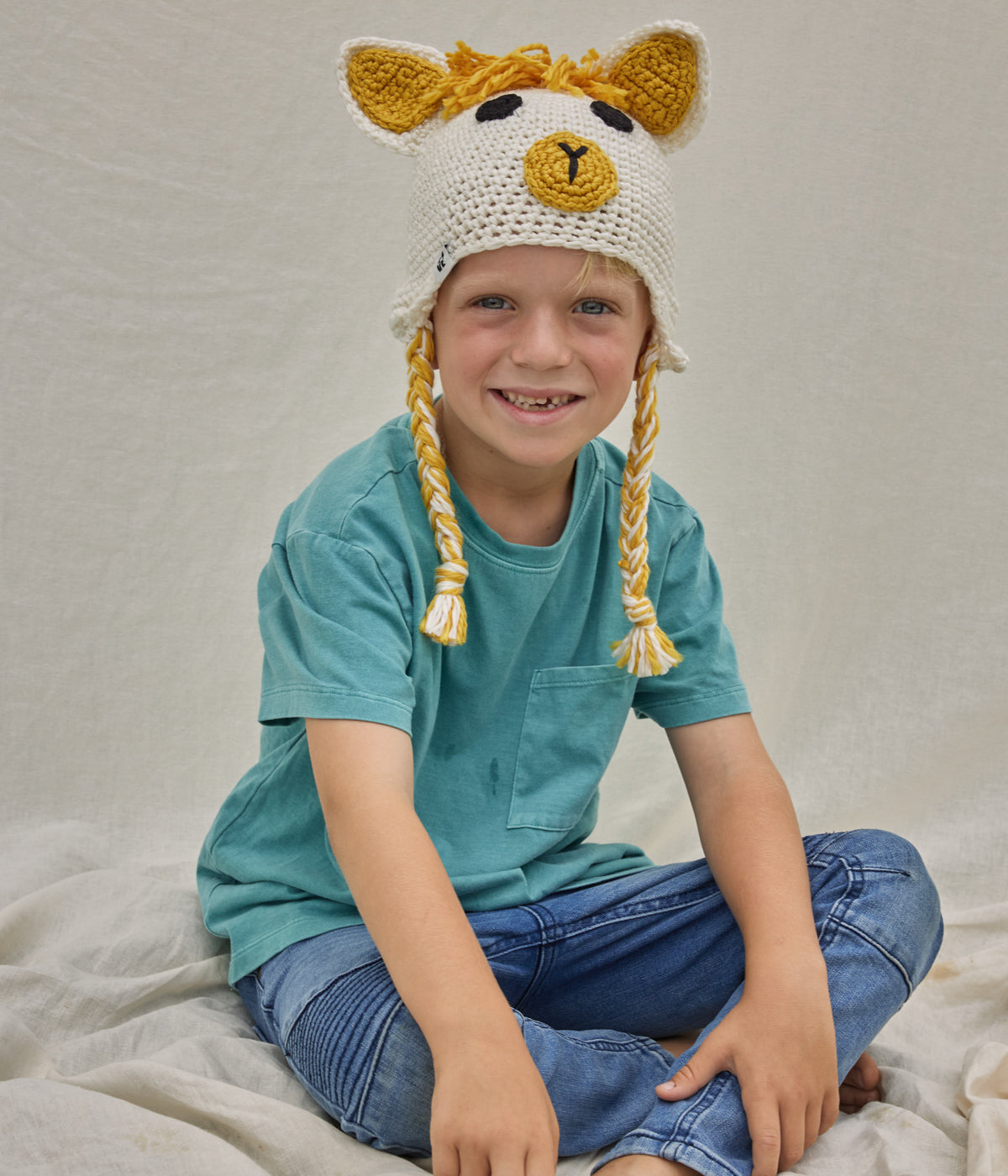 Your little alpaca will look all kinds of adorable in this knit hat, complete with two standing ears. This super cute beanie, 'the Alpaca' comes in a variety of colors and is hand-signed by the lady who made it.