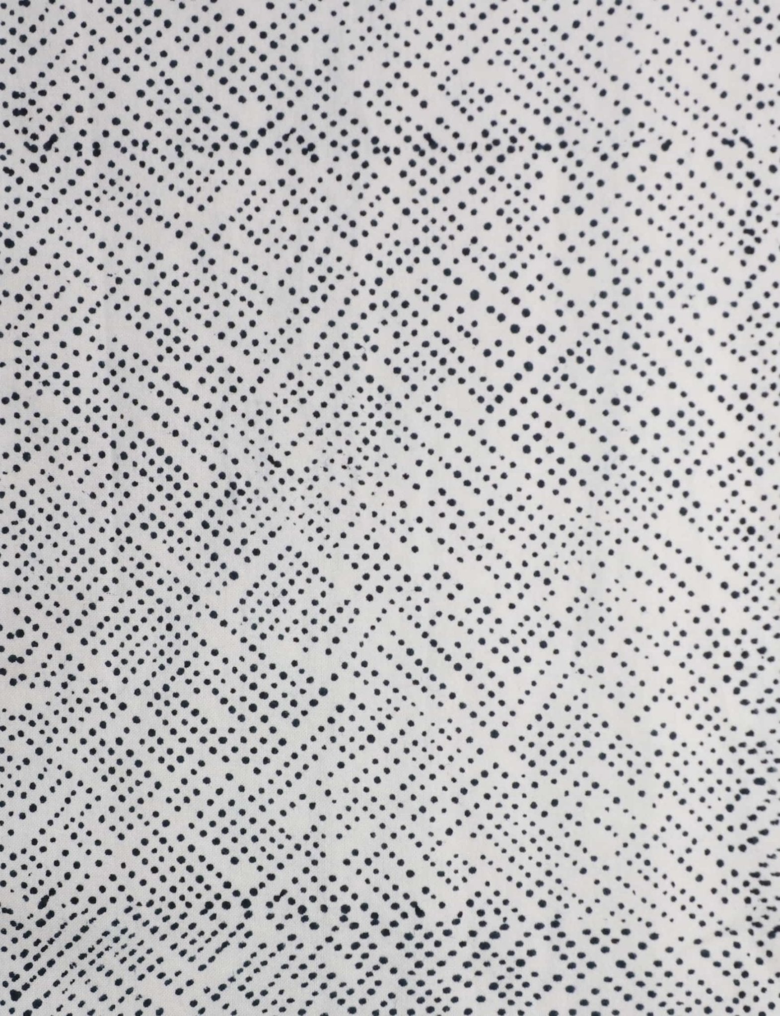 A long sleeve men's button down shirt in white with a small light blue dot block print. Gentle tapering at the waist with a straight and narrow profile and a broader fit in the shoulders gives this shirt the perfect fit.