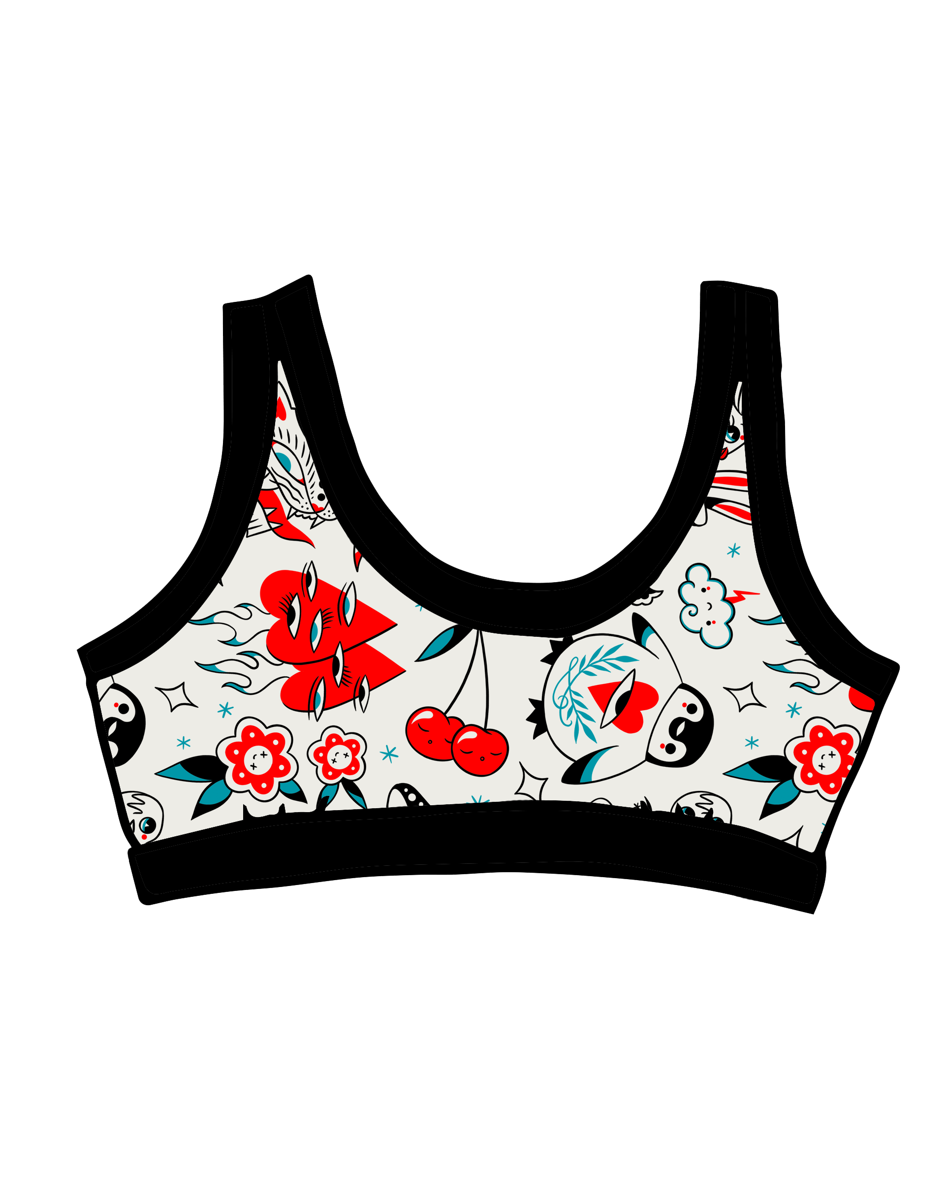 This ink-redible print is illustrated by local tattoo artist Connie Gabbert. Her work is a perfect mix of whimsy and traditional style, and every one of these adorable characters pops to life. We wanted to cover our whole bodies with her tattoos, so we thought, what’s better than covering thundies with them? Now you can be inked up whenever you want!