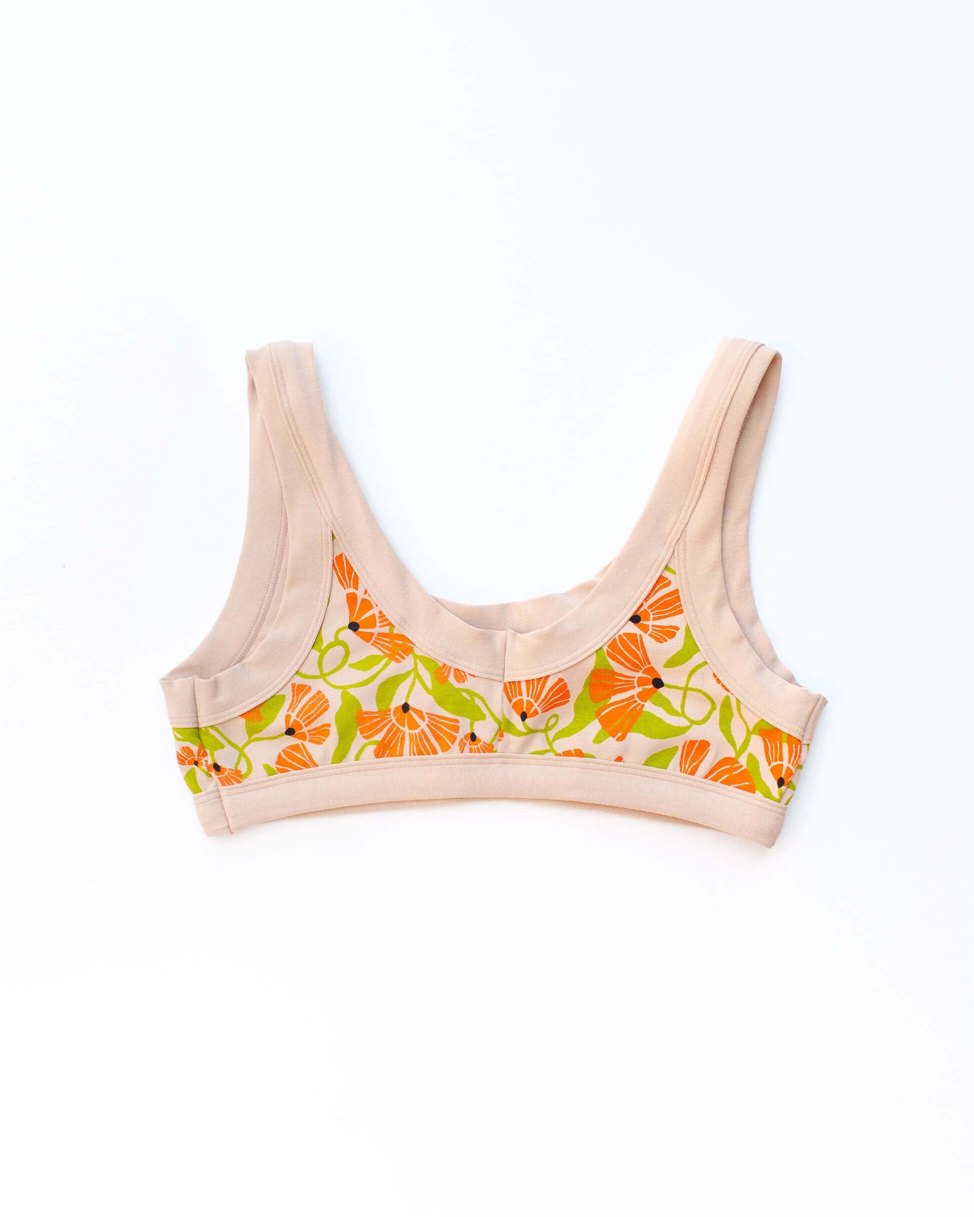 Designed by local illustrator Anna Trella Ruth Miller, this floral are printed on Pine Nut in a mid-century inspired soft orange and pea green with little black accents.