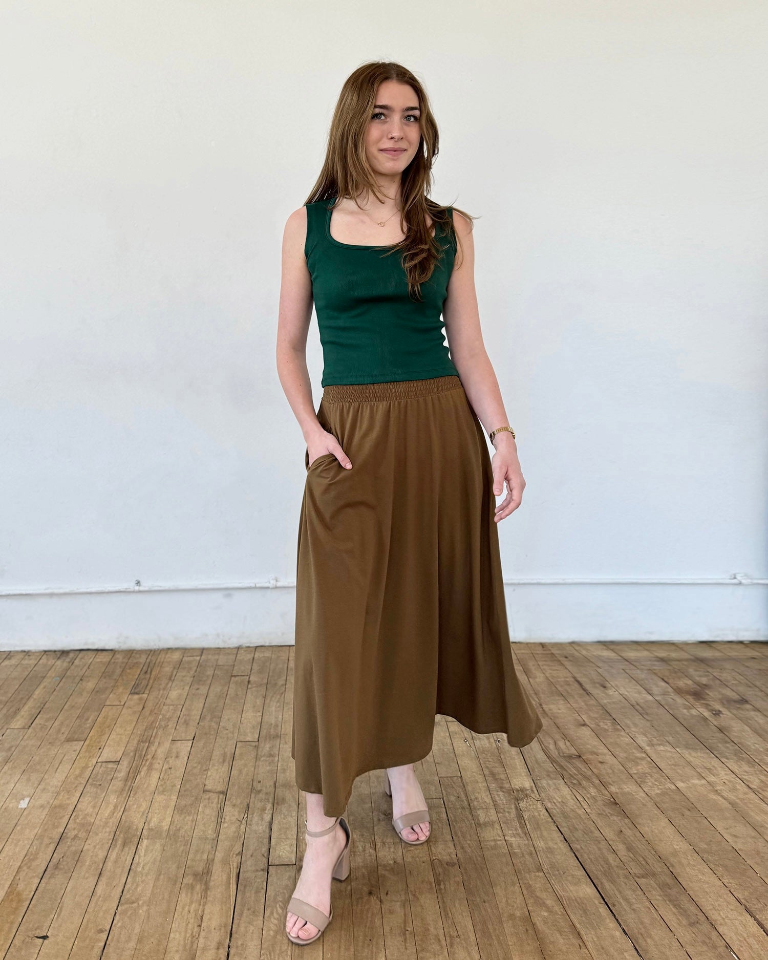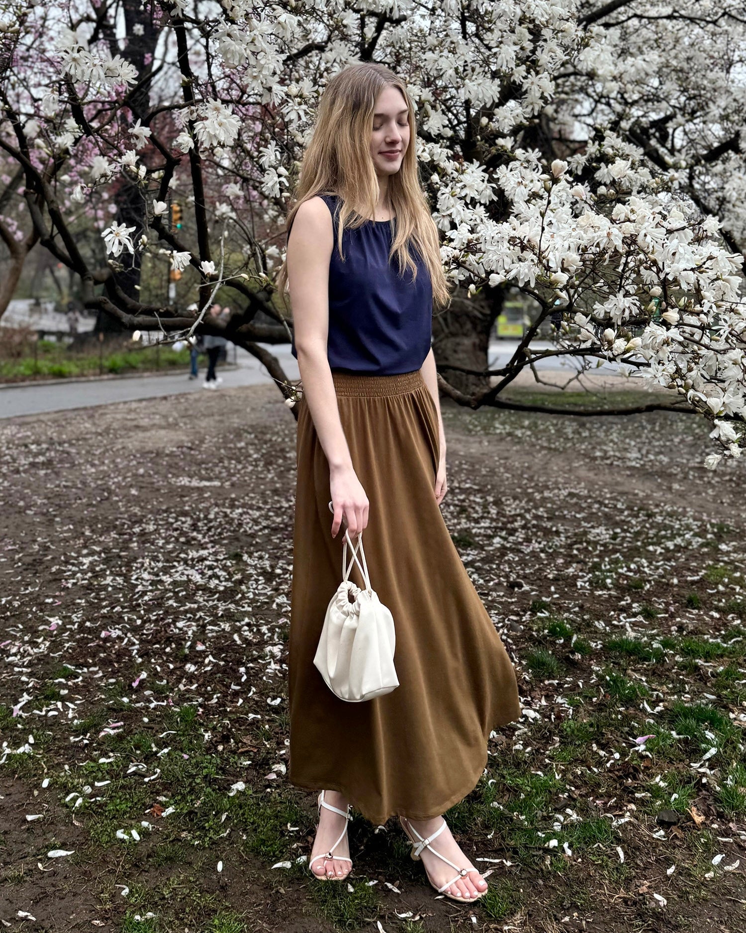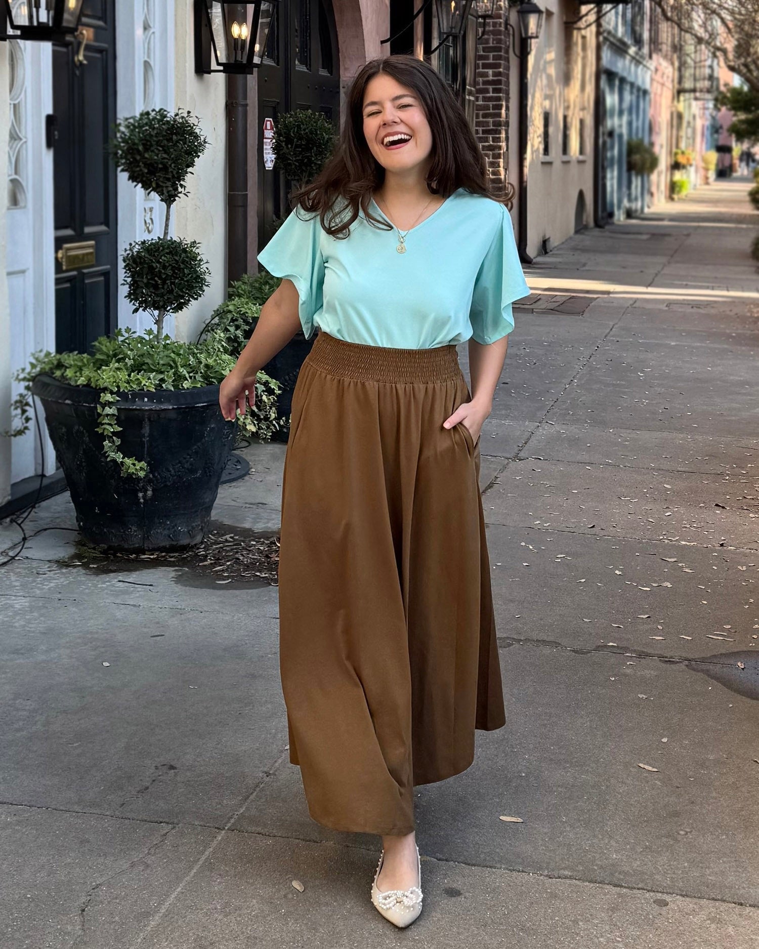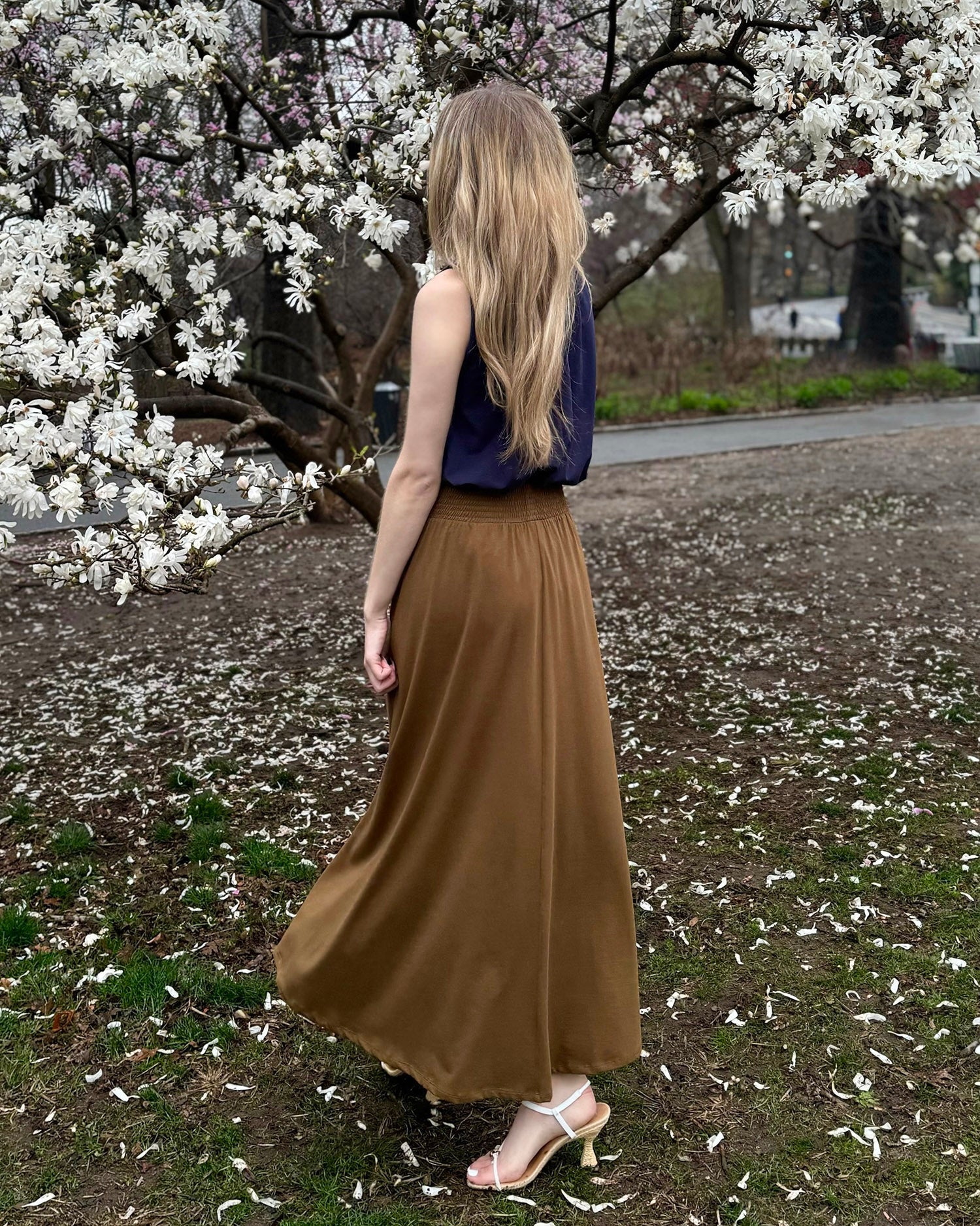 Feel whimsical and chic in this flowy maxi skirt. The smocked waistband is fitted yet comfortable, and the pockets will feel like they aren't even there.