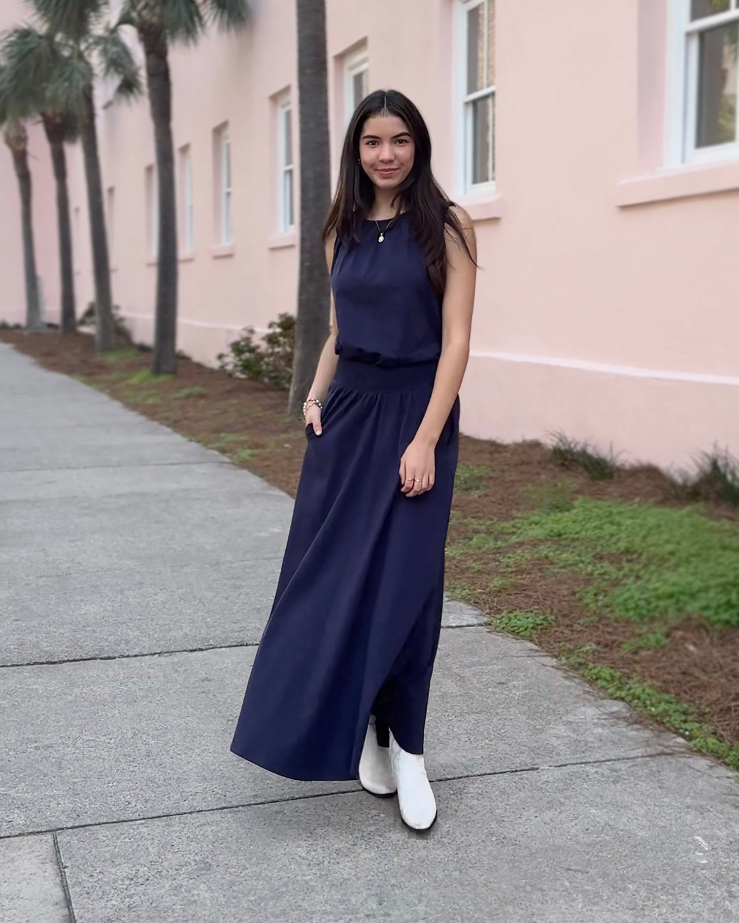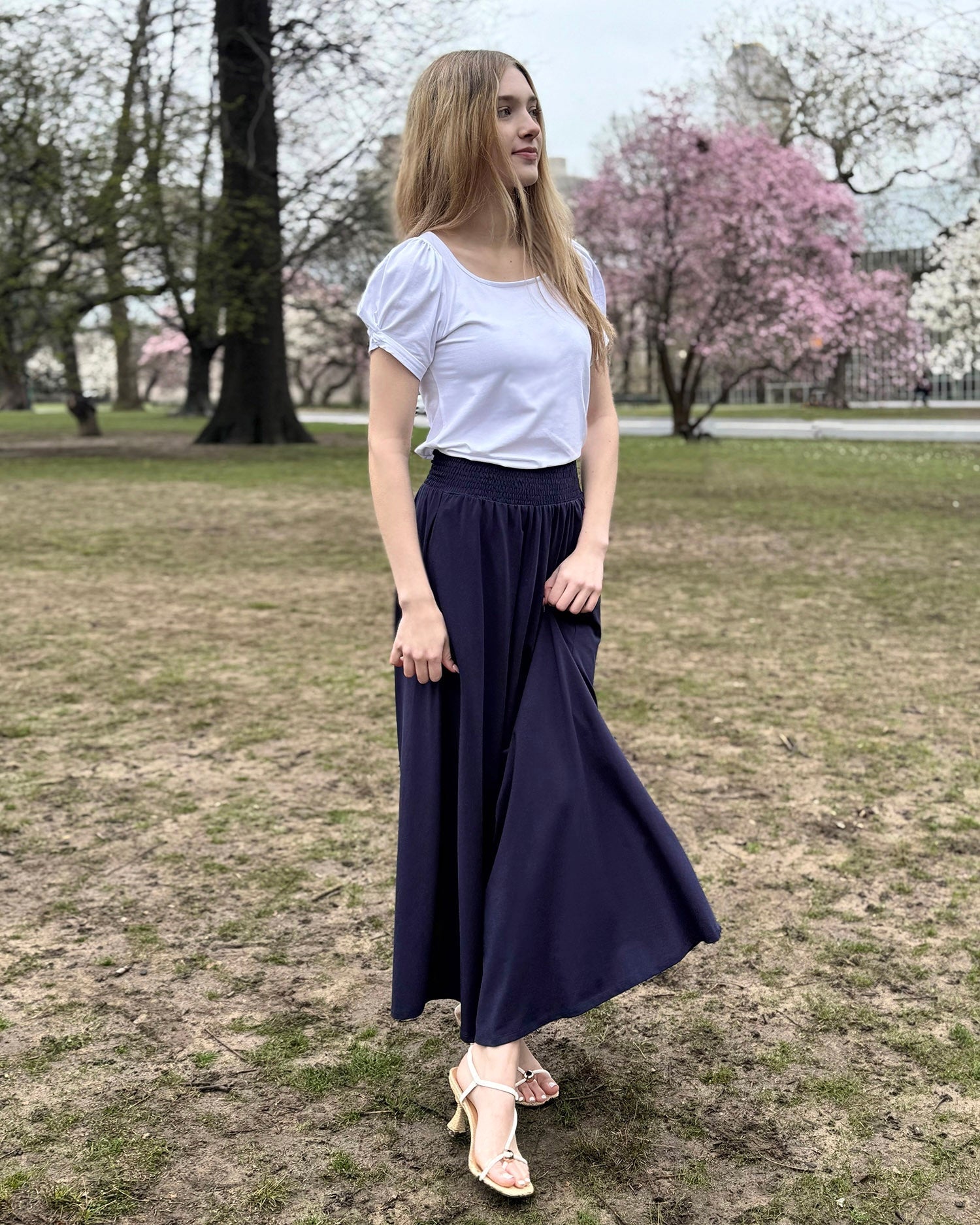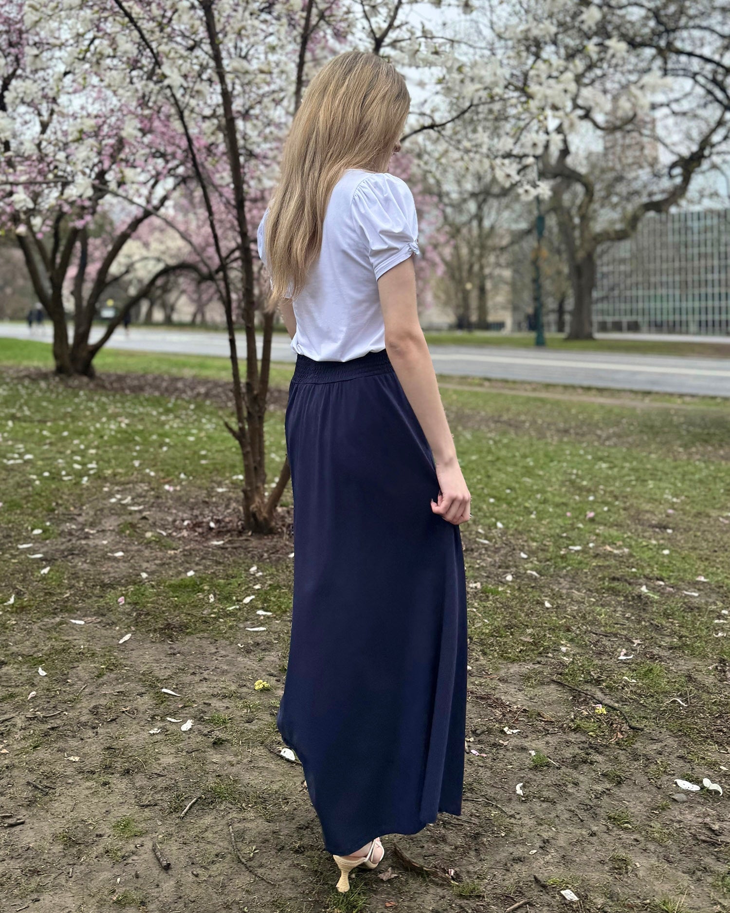 Feel whimsical and chic in this flowy maxi skirt. The smocked waistband is fitted yet comfortable, and the pockets will feel like they aren't even there.