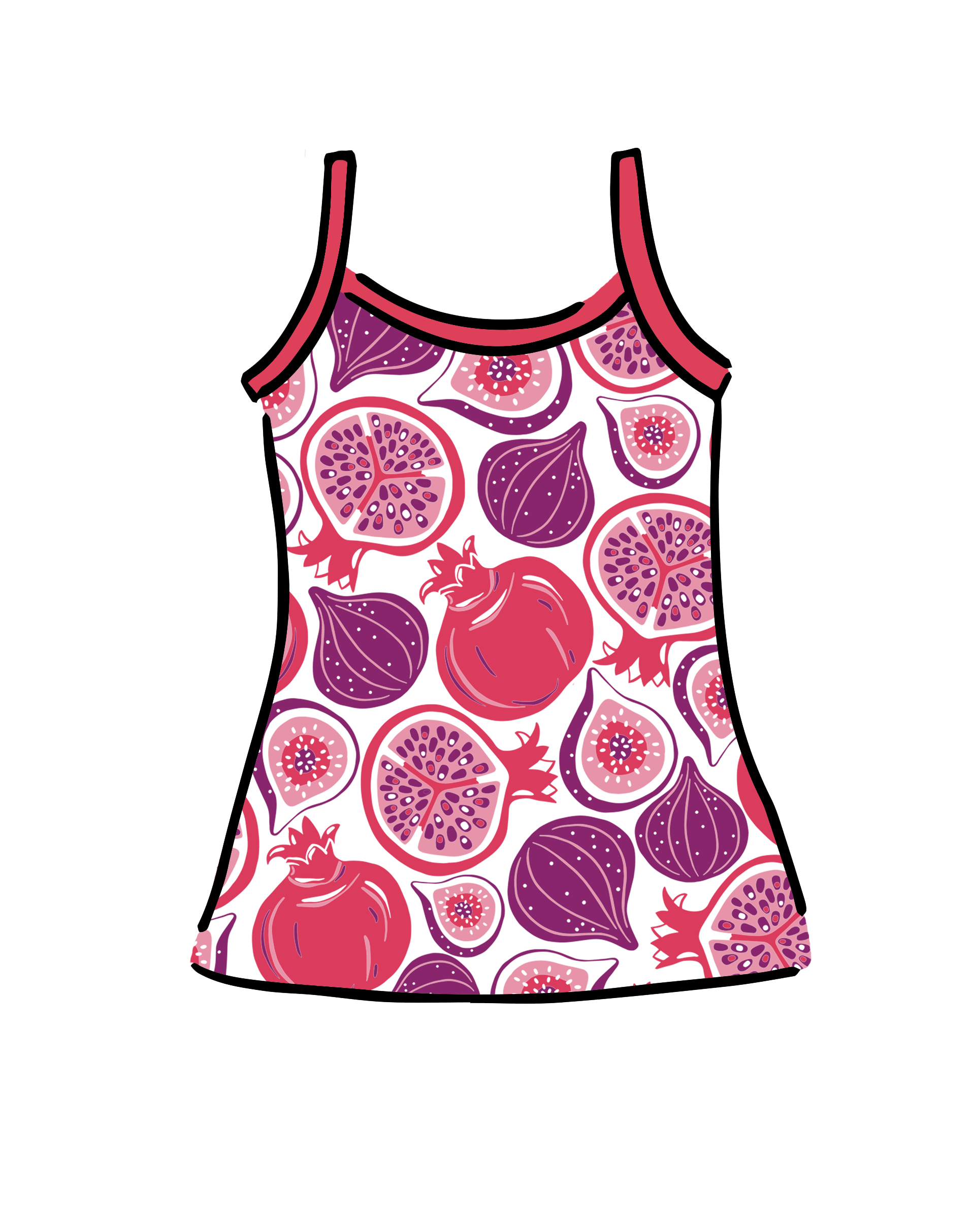 We can't FIG-ure out why we love this print so much, it's just POM-atively a-peeling-ing. Big bold Pomegranates and Figs printed on Plain Vanilla and bound with our new Pomegranate Punch, Two Fruits will never be too fruity.