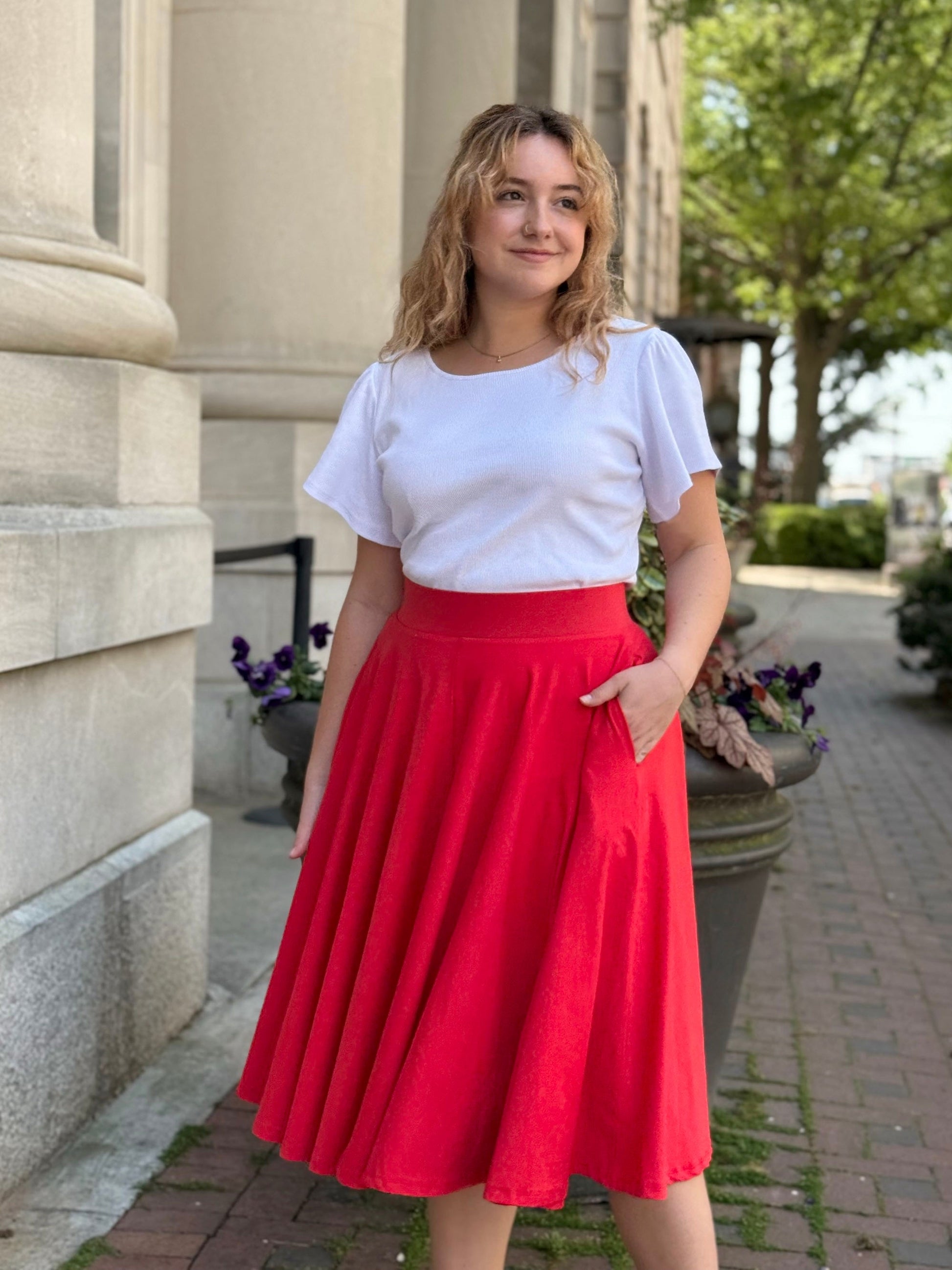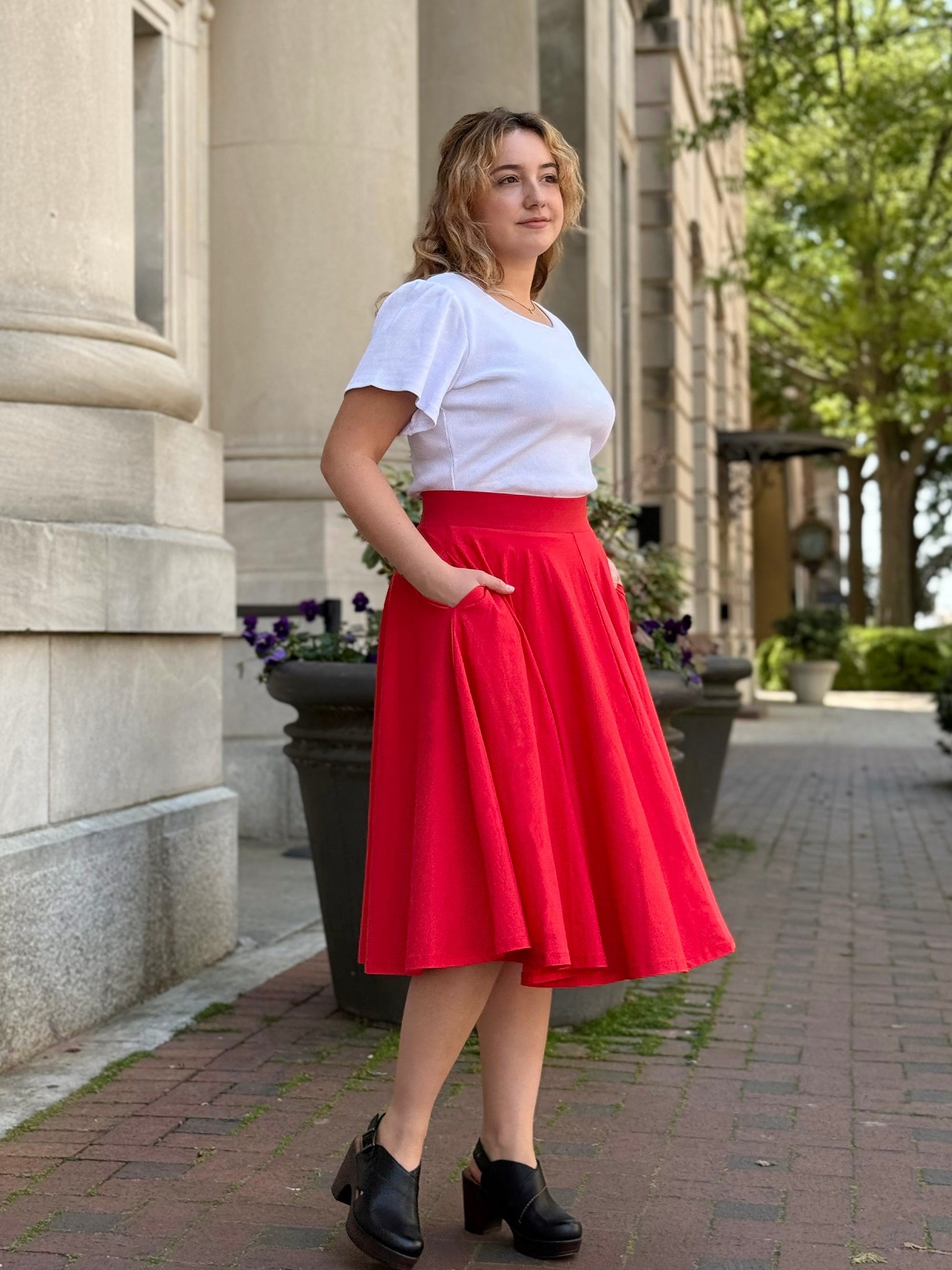 Featuring hidden pockets in the side seams, a full 4-panel circle skirt, and a pull-on waistband for hassle-free dressing, the Ciela is sure to be a wardrobe favorite.