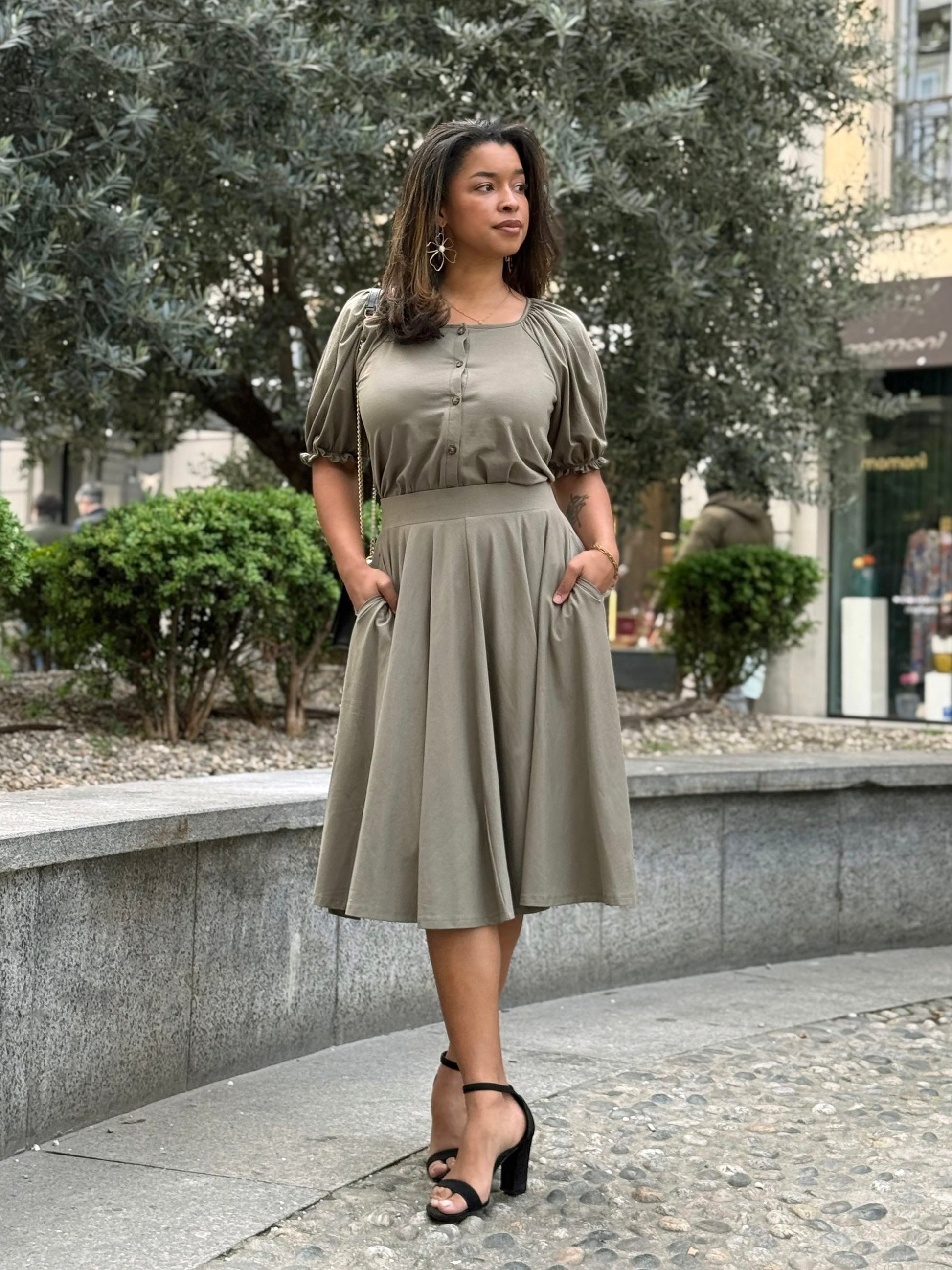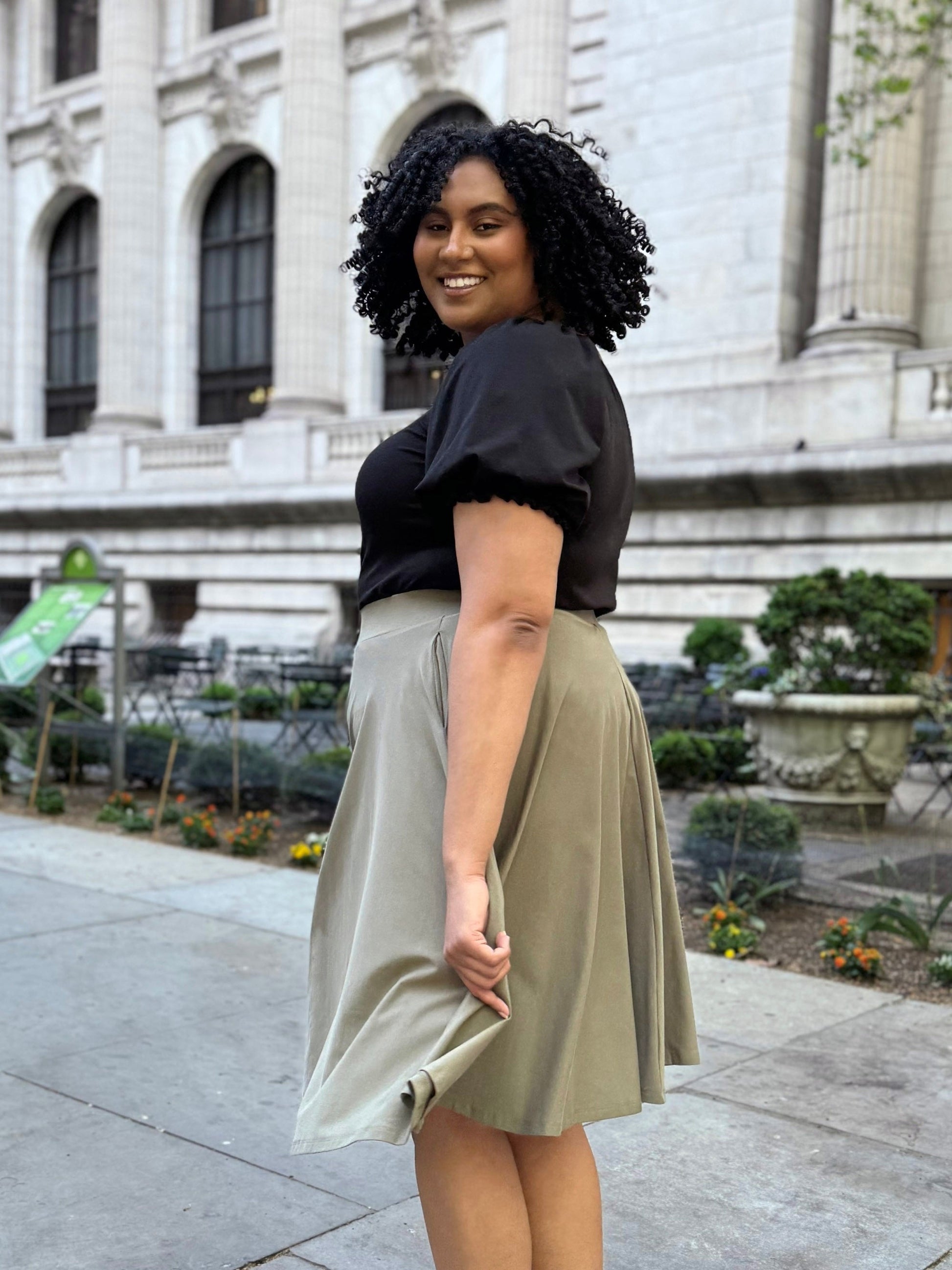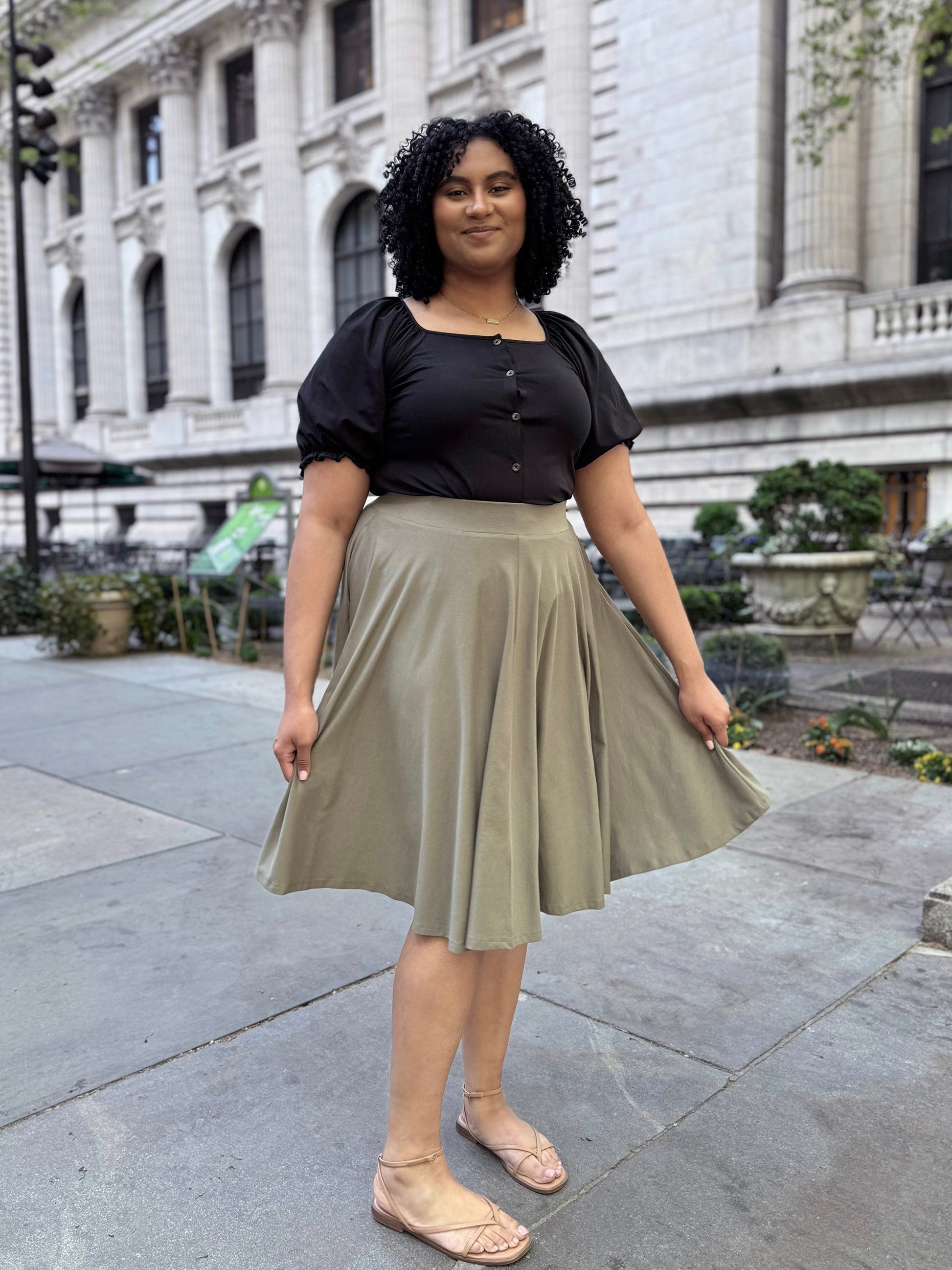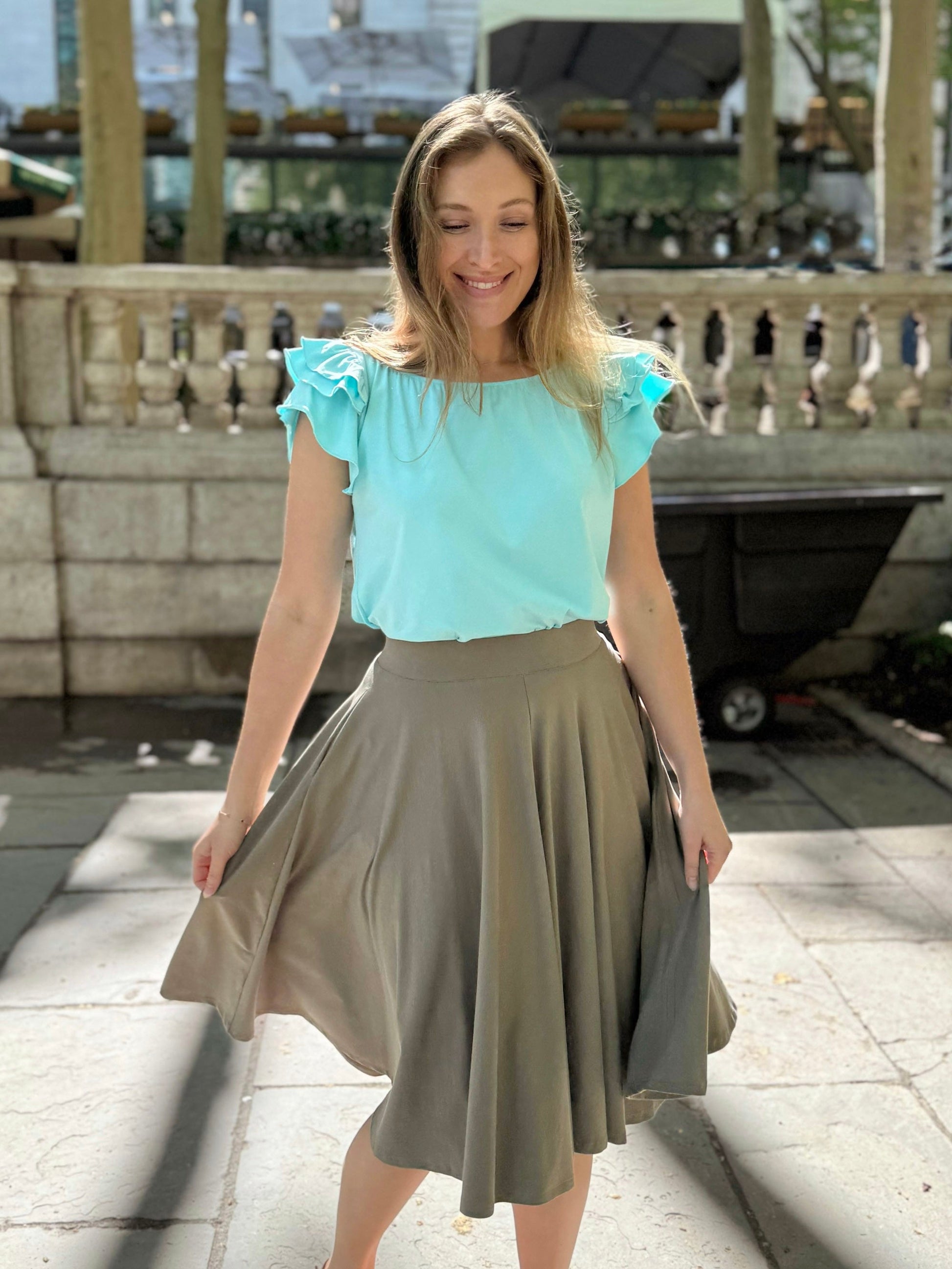 Featuring hidden pockets in the side seams, a full 4-panel circle skirt, and a pull-on waistband for hassle-free dressing, the Ciela is sure to be a wardrobe favorite.