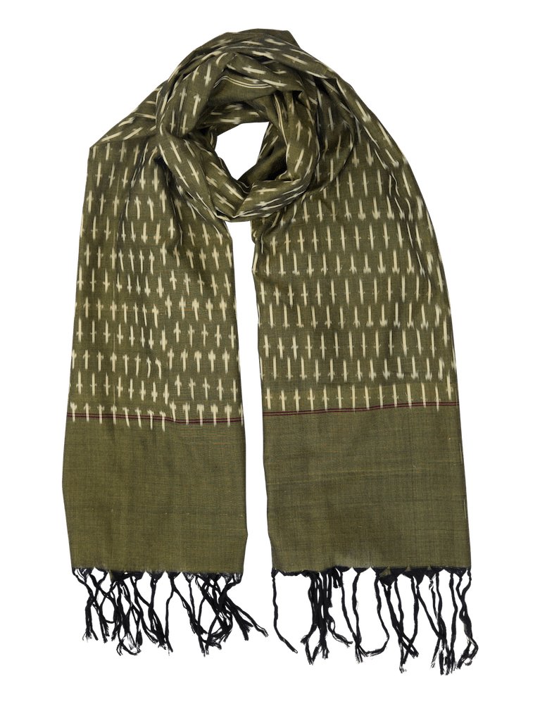 Offer up an olive branch to the gods of fashion in this lightweight cotton ethically made scarf, featuring tassels at the ends.