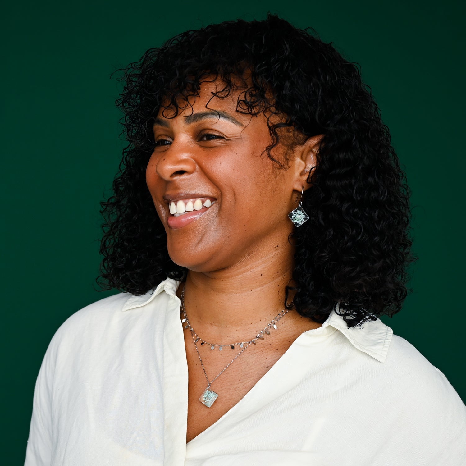 A pair of vibrant mint blooms—delicately preserved in crystal-clear resin—sway with elegance from classic French hooks. The tilted square design of the Forever in Bloom Earrings catches the light as you move, offering a fresh, feminine statement that celebrates growth, transformation, and the journey to freedom. Each pair tells a story of hope—made possible by your choice to shop with purpose.