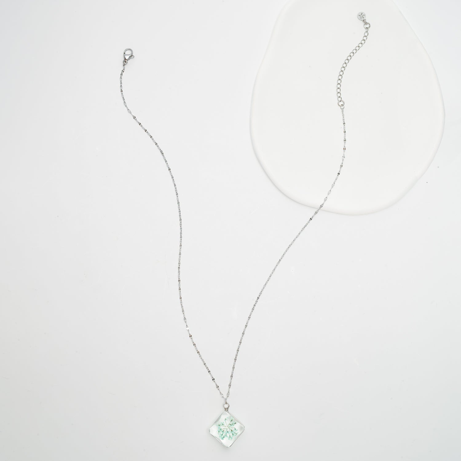 A vibrant mint bloom, forever captured in light-reflecting translucent resin, rests delicately on its corner—creating a unique diamond silhouette that hangs from a timeless adjustable stainless steel chain. The Forever in Bloom Necklace is a gentle reminder that beauty can flourish even in the hardest seasons. Wear it close to your heart as a symbol of new beginnings—for survivors at Starfish Project and for you.