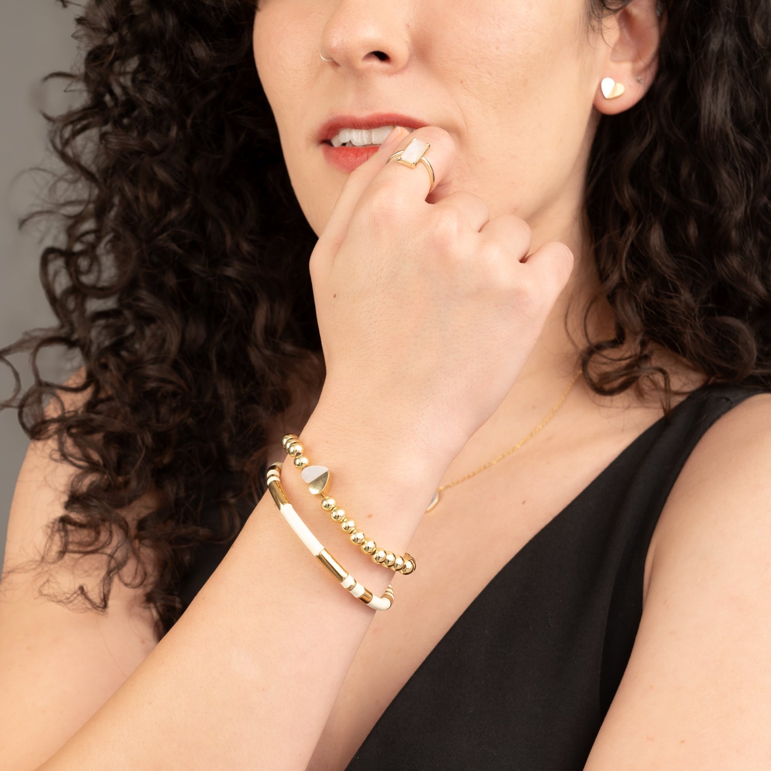 Materials: 18k gold plated brass beads with mother of pearl