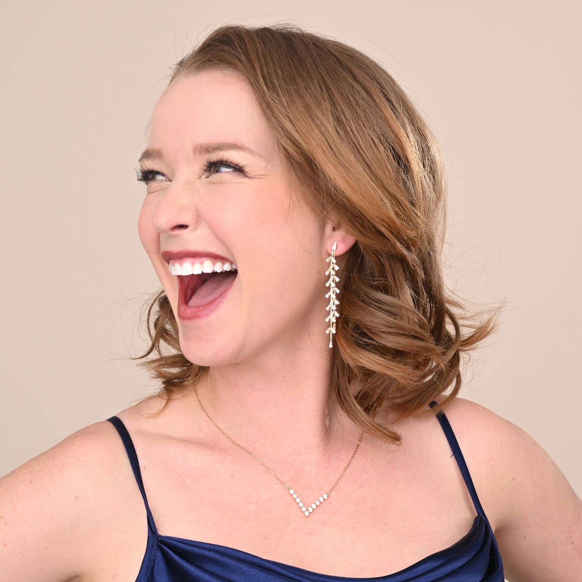 Embrace elegance with our Graceful Willow Zircon and Gold Dangle Earrings. Inspired by the delicate beauty of a weeping willow, these earrings feature 14K plated gold adorned with shimmering zircon stones. Perfect for both formal events and day-to-day sophistication, pair them with a sleek updo or flowing locks to highlight their graceful movement. Elevate any outfit with its timeless charm.
