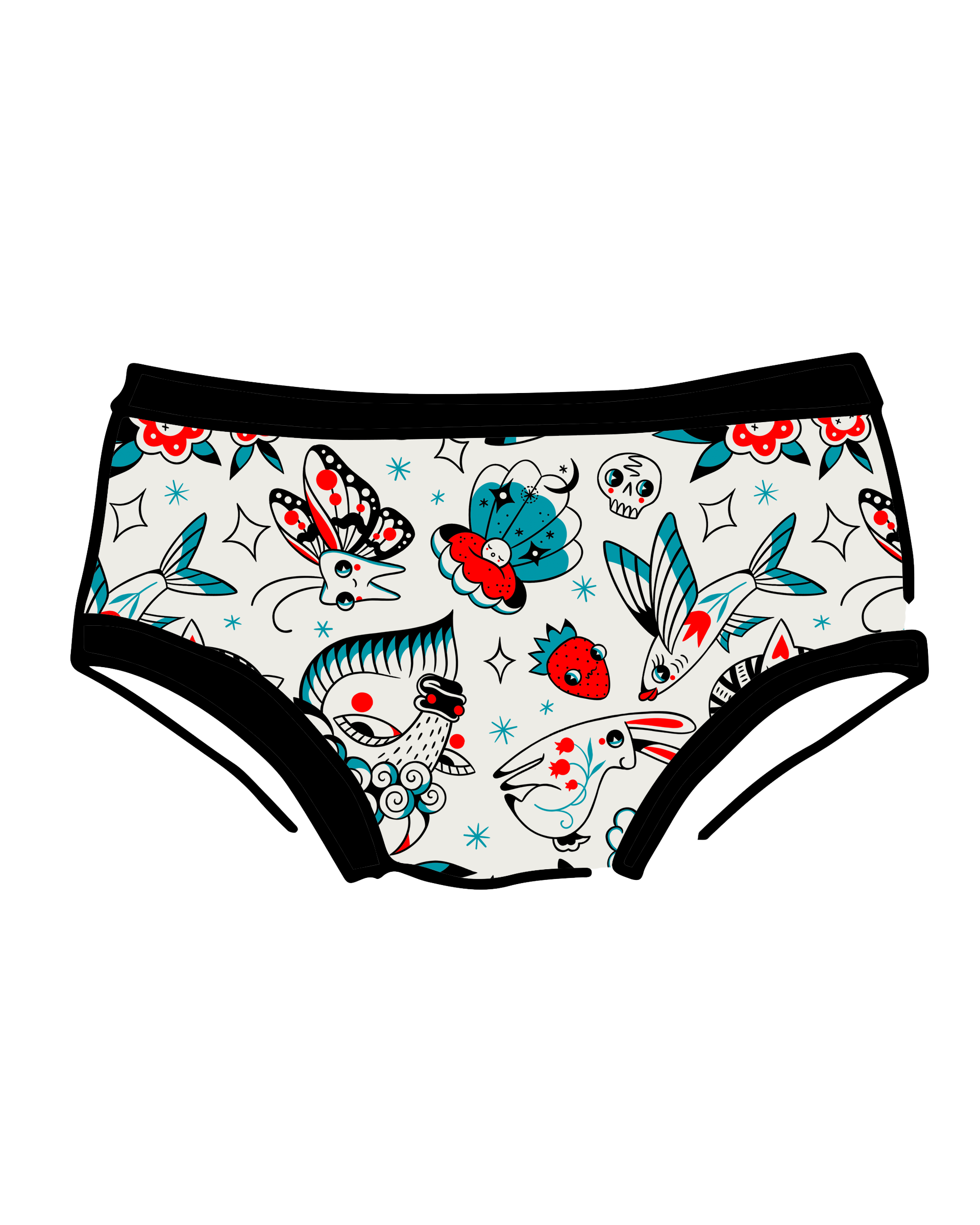 This ink-redible print is illustrated by local tattoo artist Connie Gabbert. Her work is a perfect mix of whimsy and traditional style, and every one of these adorable characters pops to life. We wanted to cover our whole bodies with her tattoos, so we thought, what’s better than covering thundies with them? Now you can be inked up whenever you want!