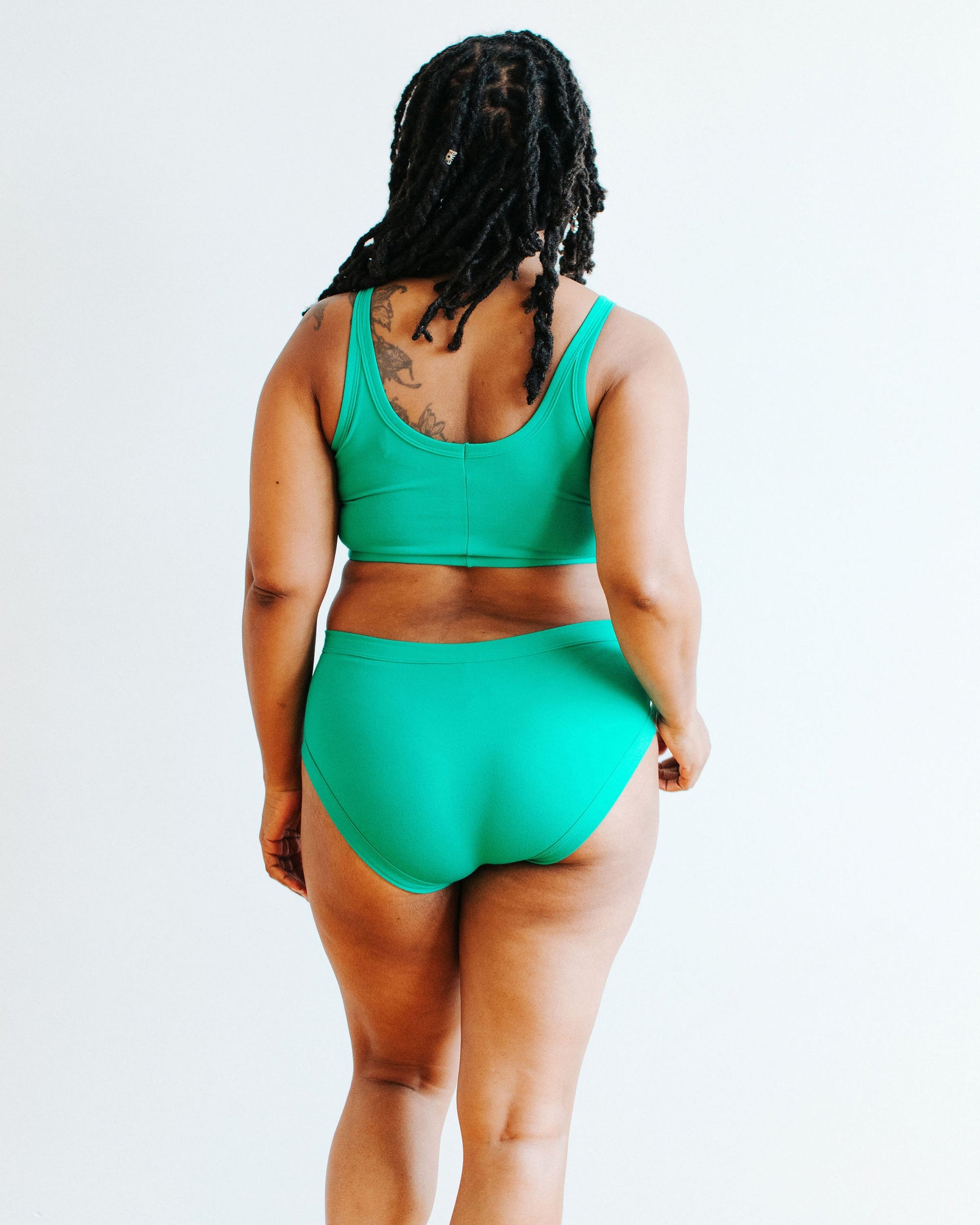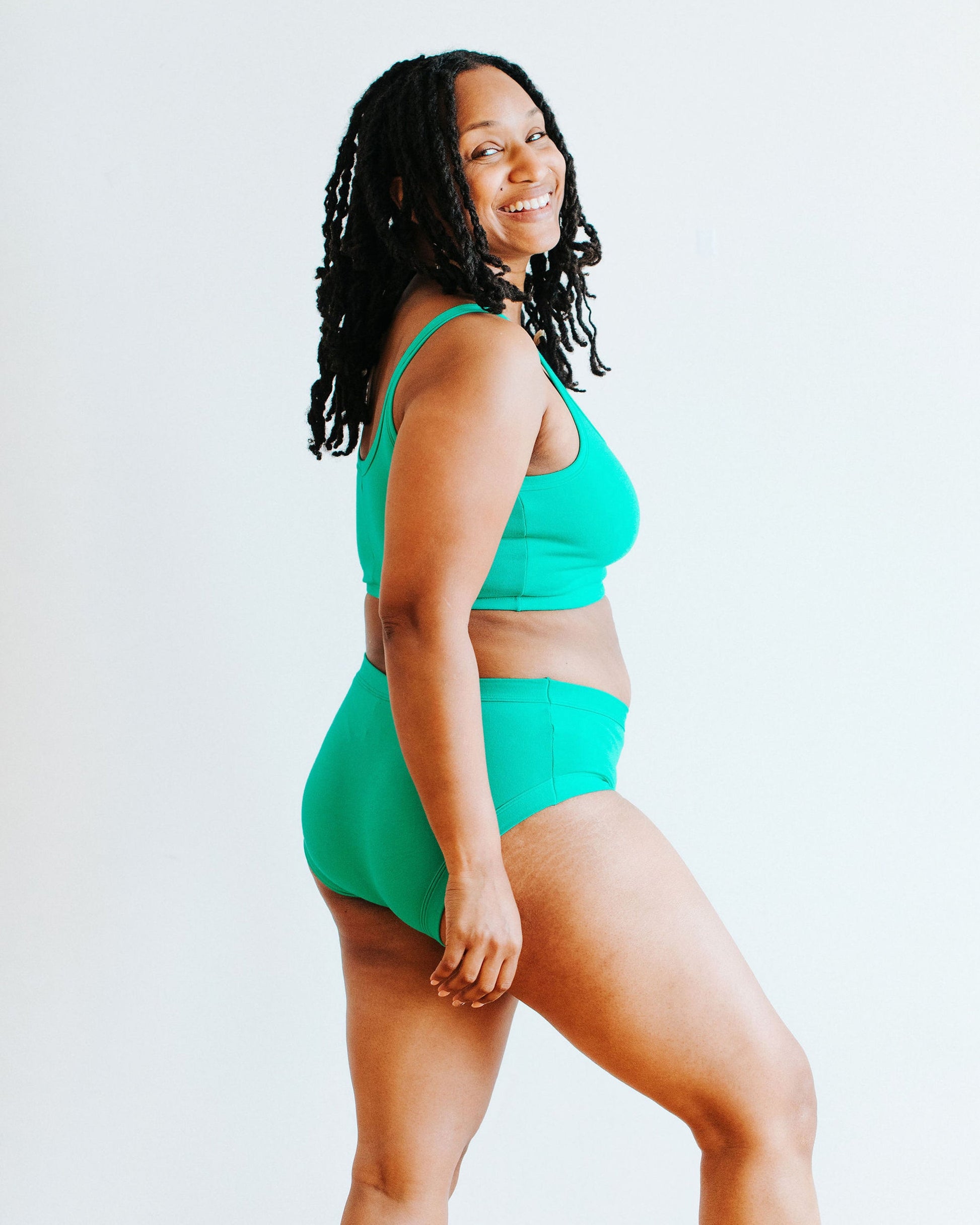 Kendra is wearing a size LG Hipster.