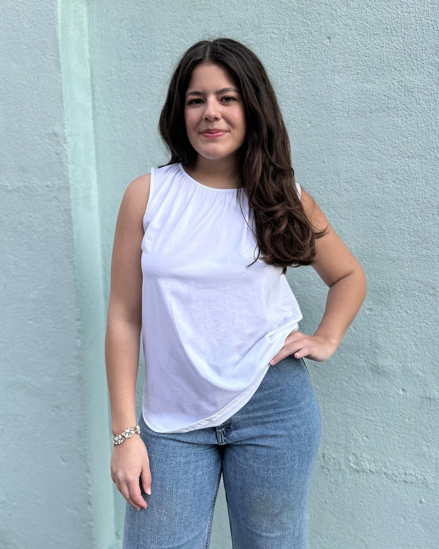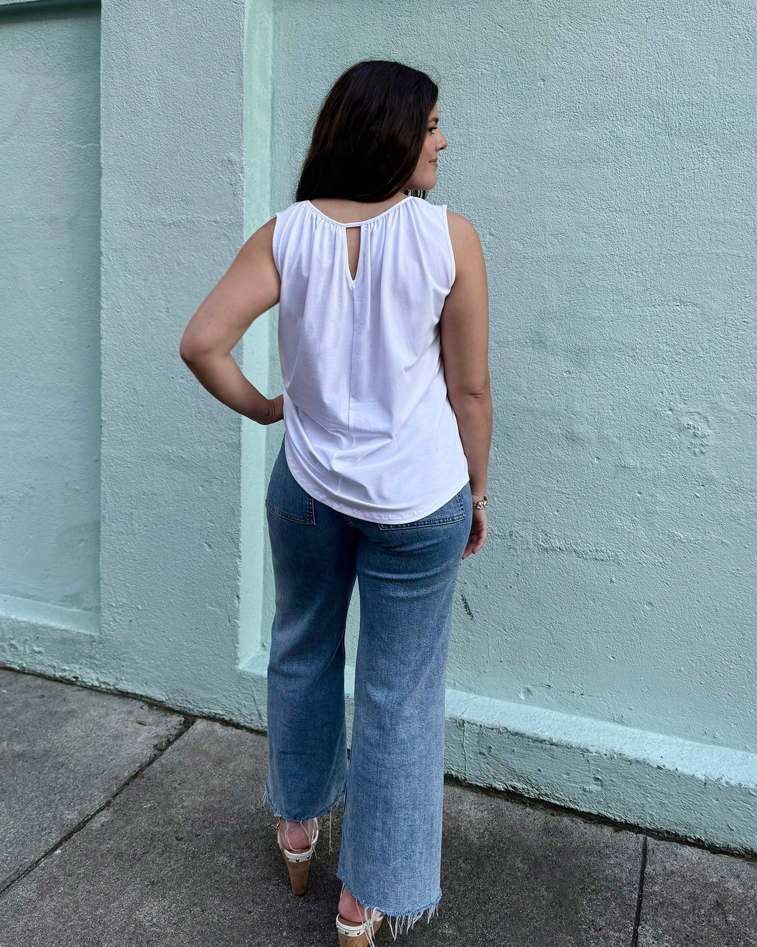 The Laguna tank is designed for effortless, enduring style. Made from cotton jersey, the top features a boatneck with gathering that flatters in all the right places. The slender keyhole in the back has an elegant touch.