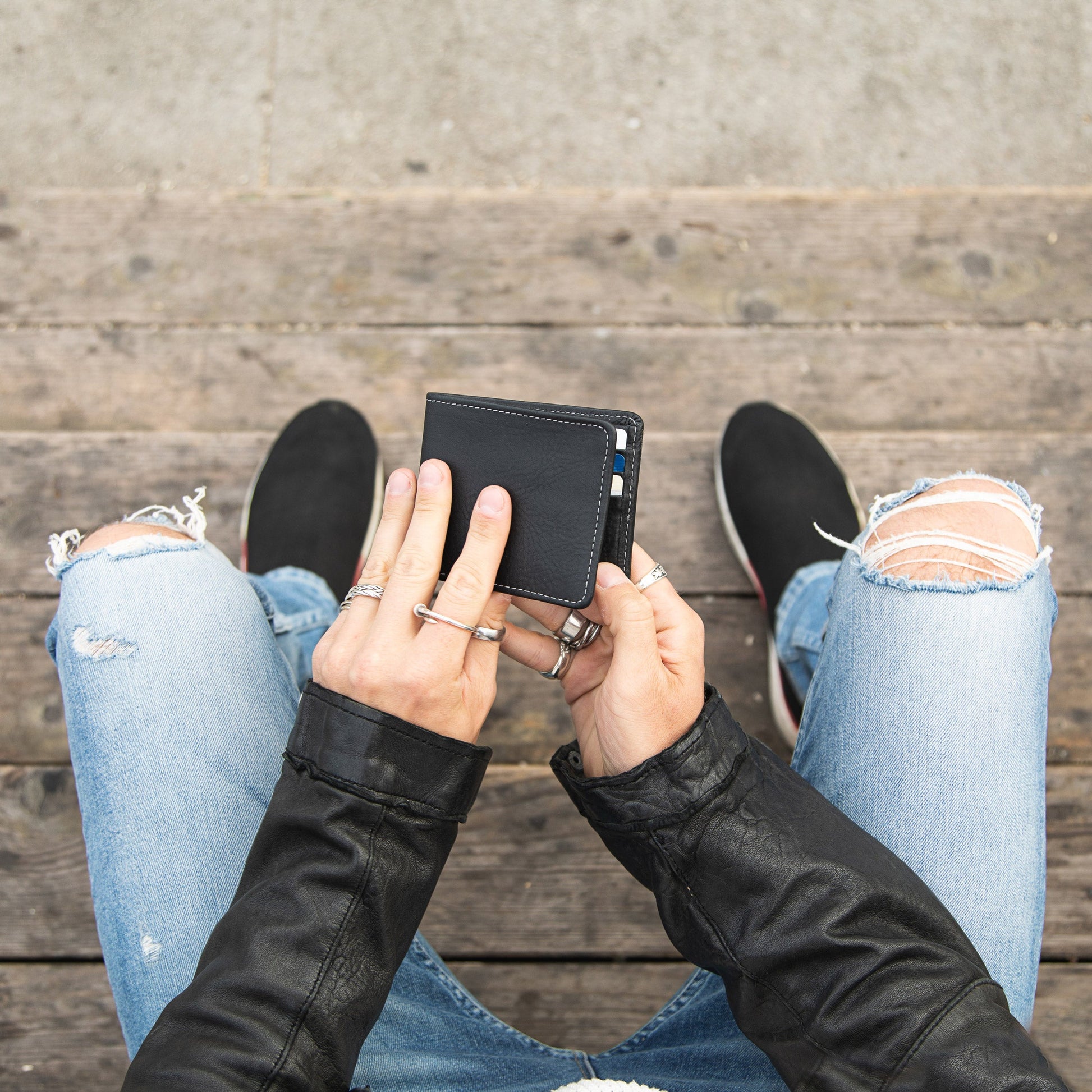 This billfold lets you keep your finances organized in style. This is our most spacious wallet with 8 internal pockets and 1 long top pocket for cash. This wallet can fit one to three cards of each pocket.