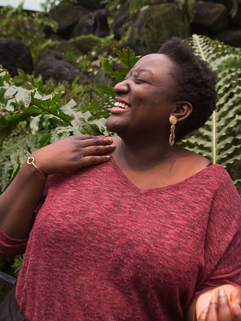 These long stacked circles studs made from upcycled horn are a playful pair of earrings that can add some natural vibes to your look.