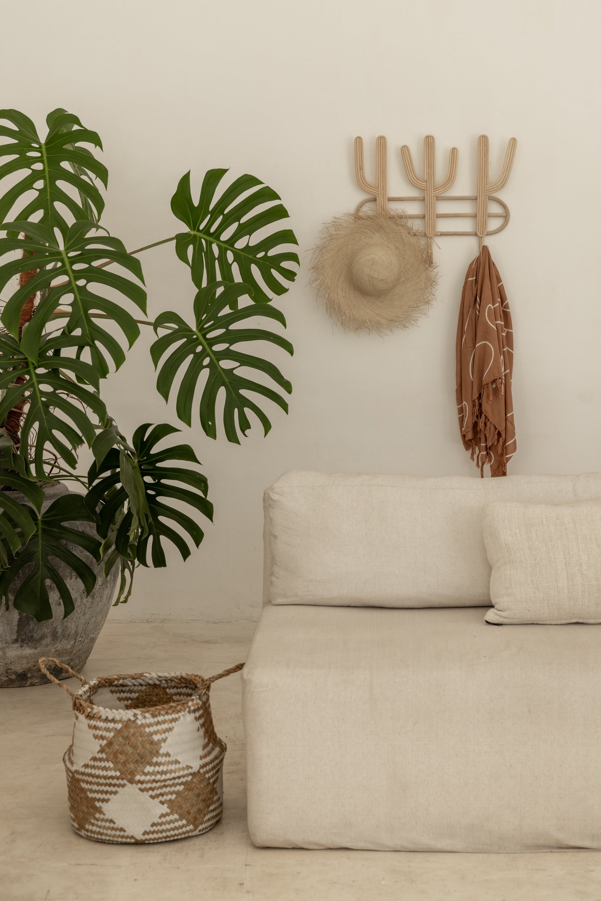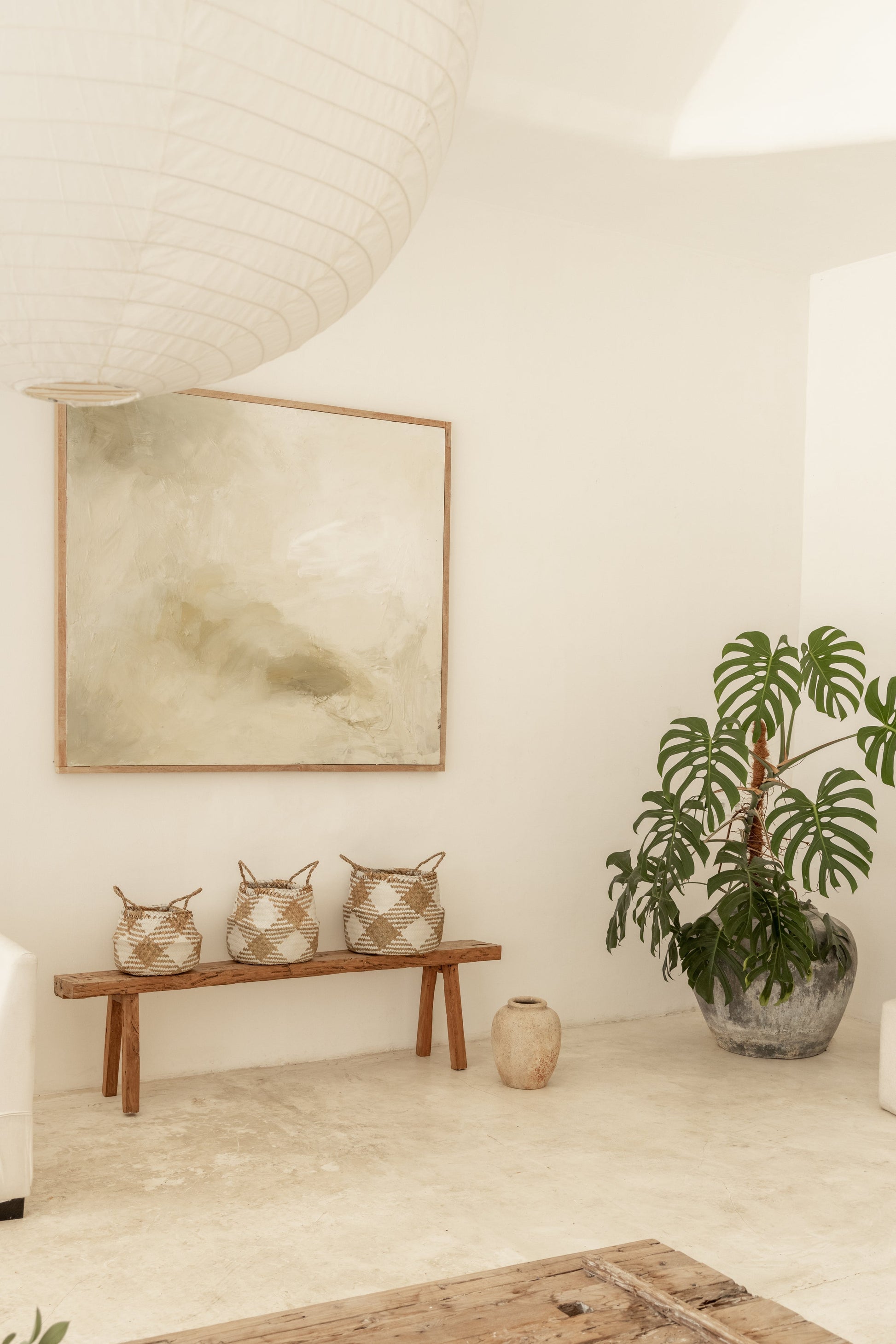 Handcrafted from seagrass in Bali, Indonesia this multipurpose plaid basket is your answer to elegantly decluttering your home. Perfect for storing towels, blankets, or toys. Also makes an elevated new home for your favorite potted house plant.