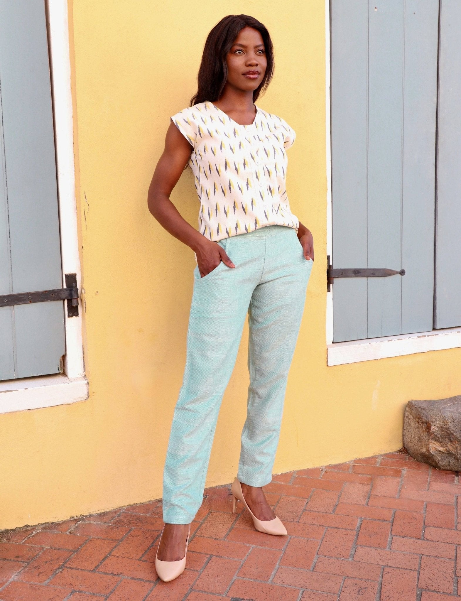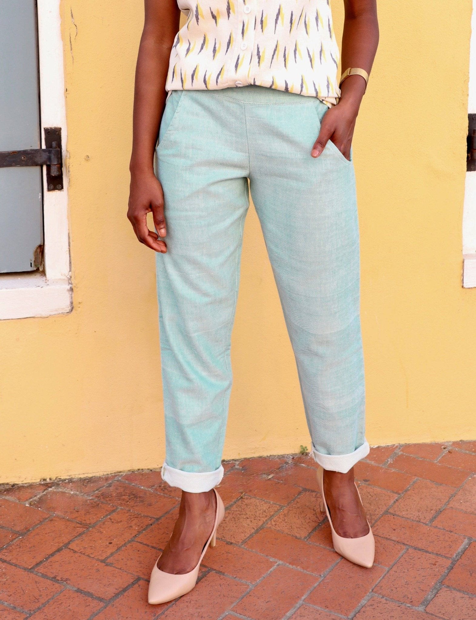Comfort will continue to be top of mind and wardrobe in these cotton pants. Think a comfortable version of a relaxed pair of jeans. These cotton pants come with elastic in the back for ease and of course, pockets.