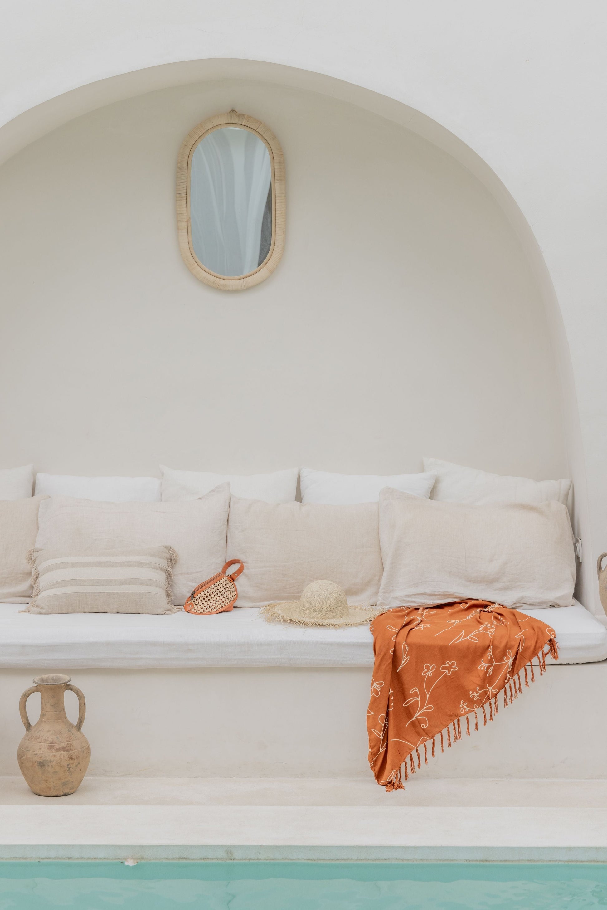 This elevated sling bag features genuine leather detailing and cane webbing along with ample storage space. The natural elements of this bag combine beautifully to create a modern and bohemian feel.
