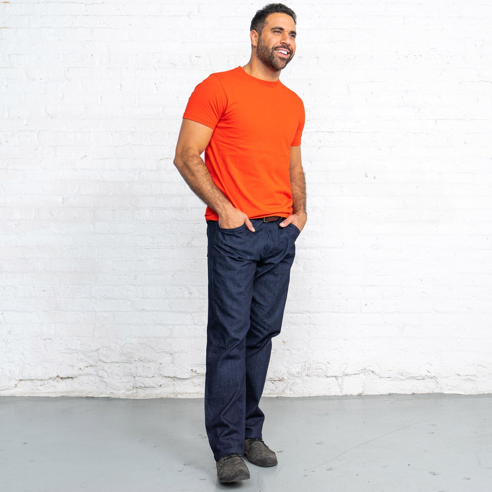 Work appropriate denim: Dark thread on dark wash—slightly more formal than our Relaxed Fit Dark Wash with matching thread. Special release with limited supply.