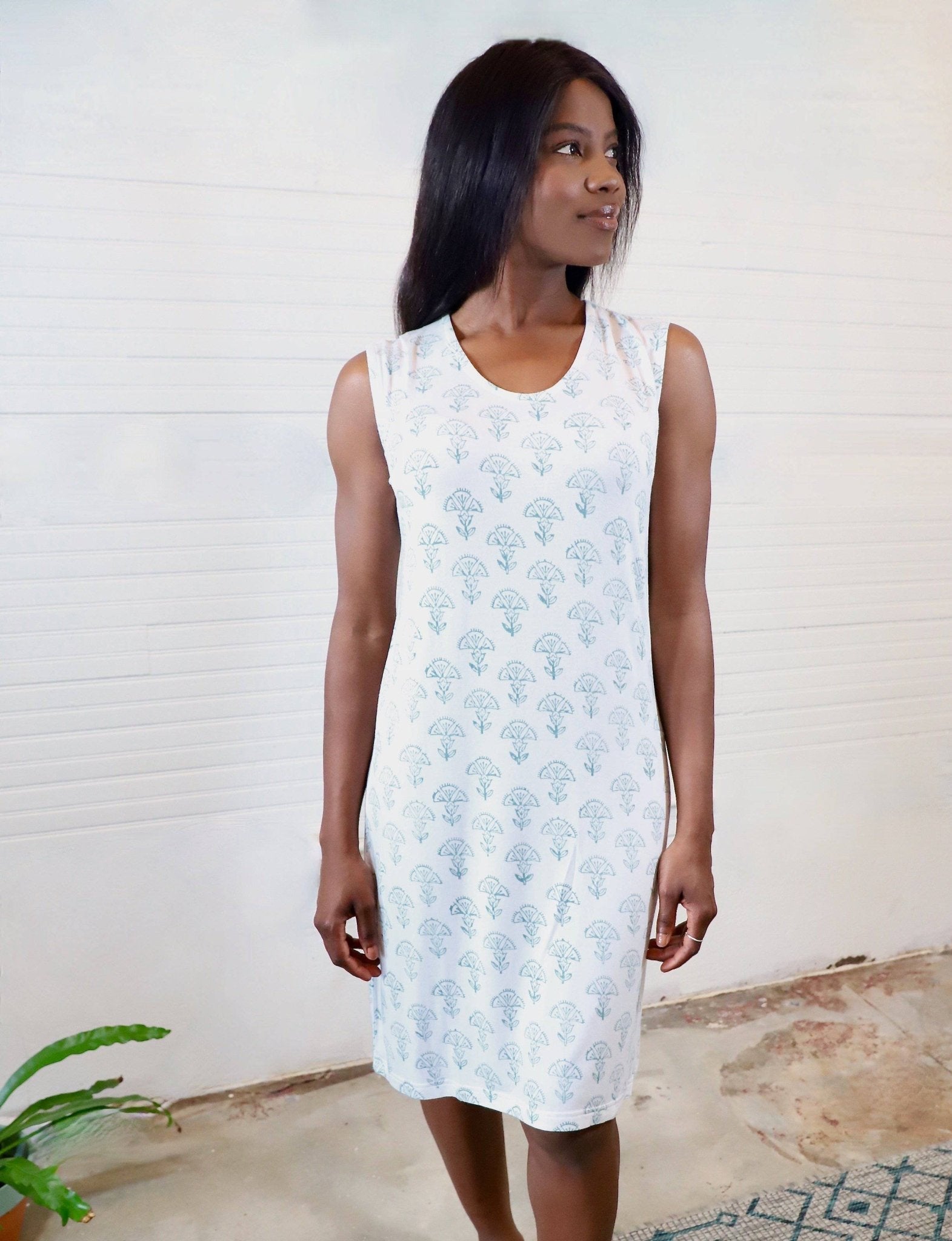Cozy up in our Remember Me nightgown. This irresistible loungewear made from organic modal (the comfiest of fabrics!) is what you pinned to your moodboard. White with porcelain blue designs and block printed!