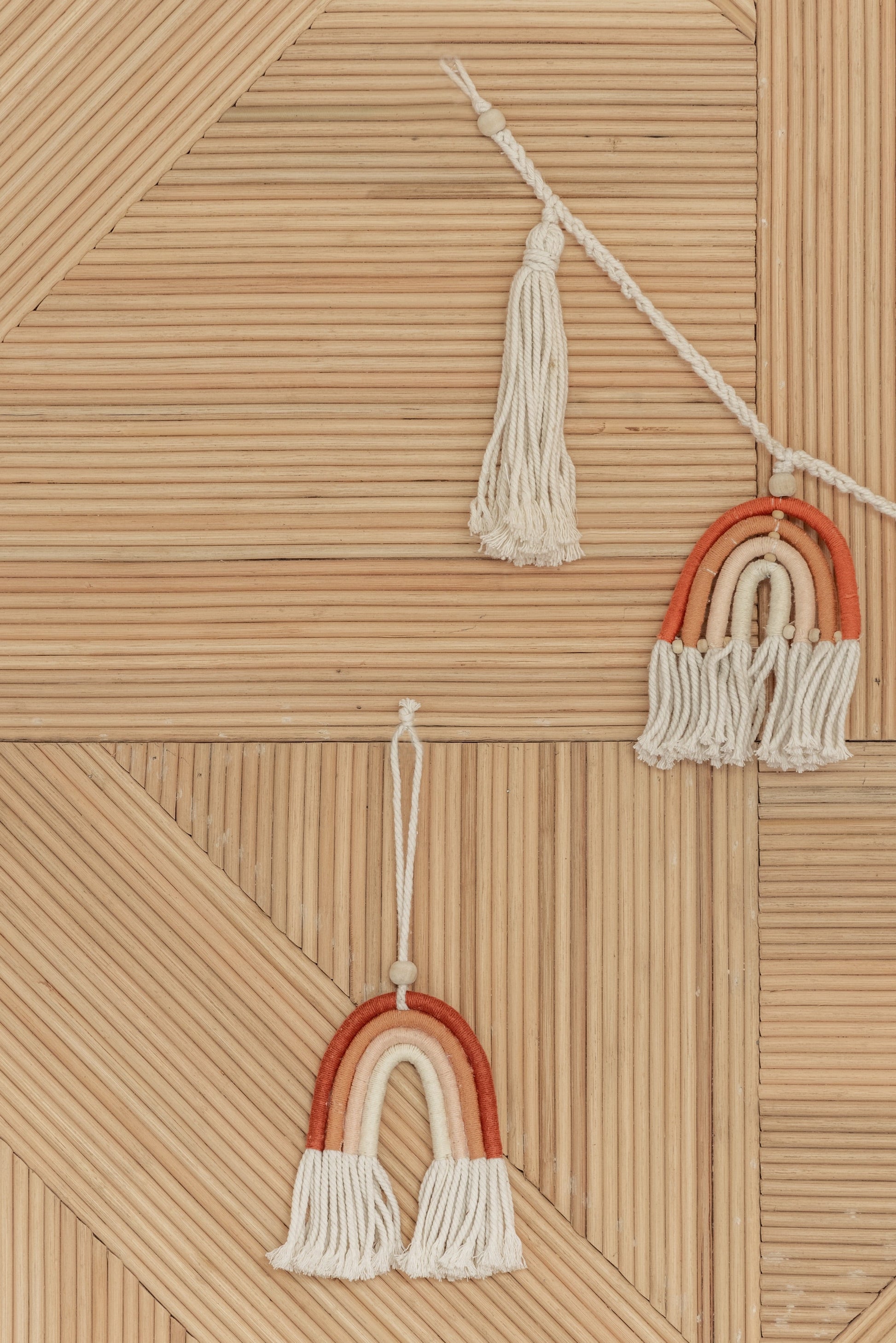 Handmade from 100% organic cotton these mini rainbows are sure to brighten any space! Add to a mobile or use as wall decor - your mini is sure to love it!
