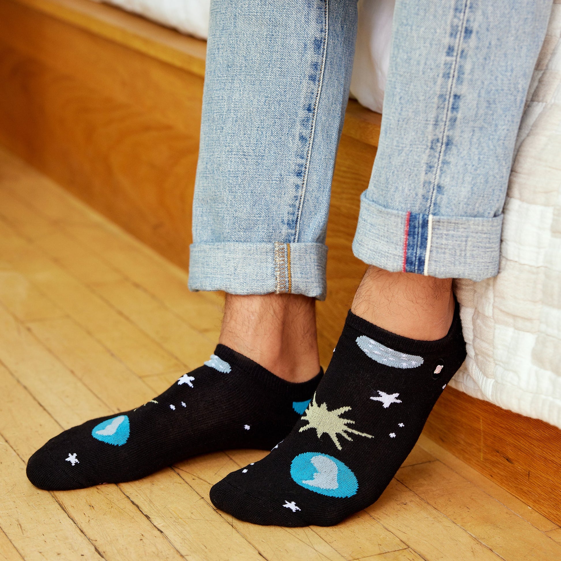 Every day can feel like a warm summer night of stargazing in this black galaxy print ankle sock.