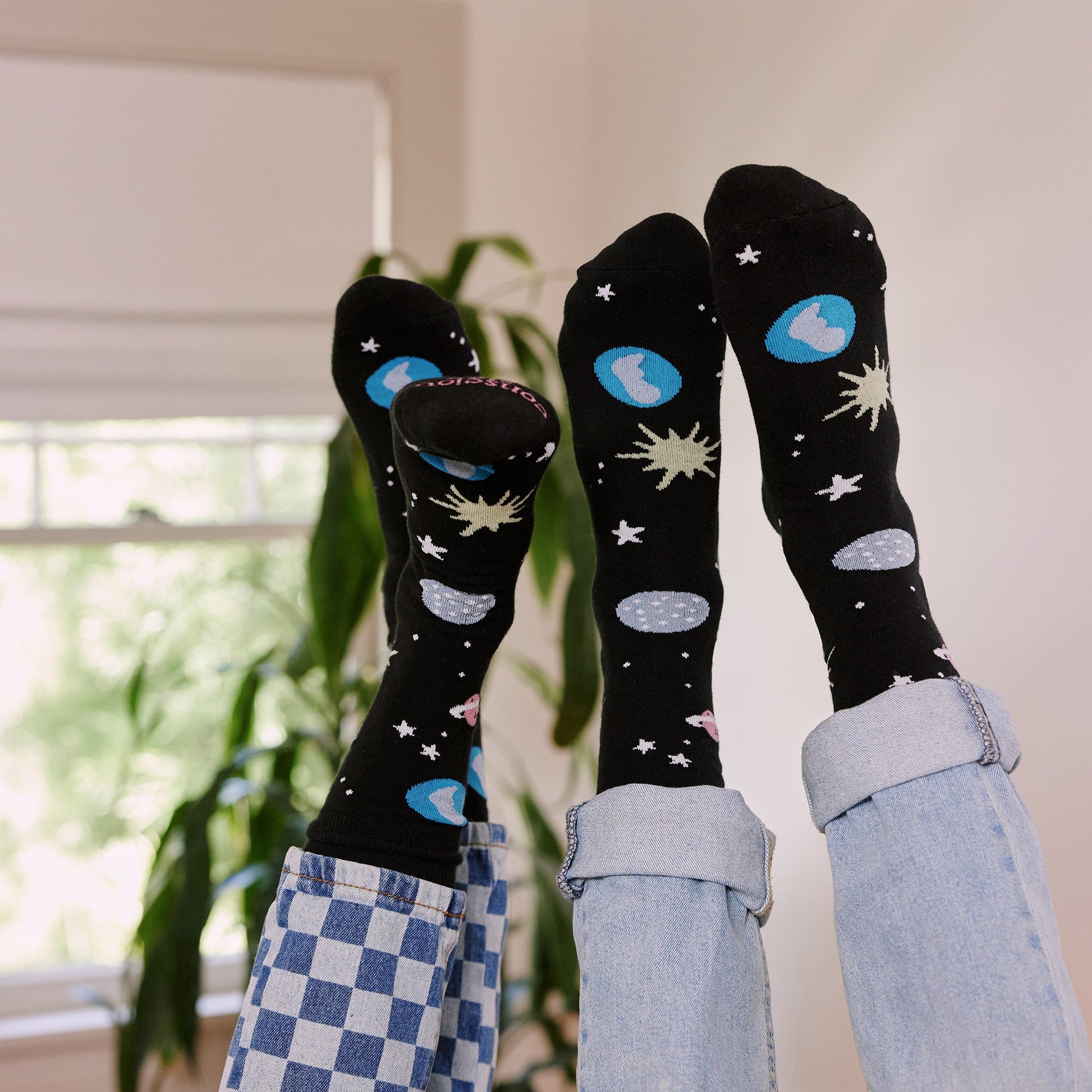 They say if you shoot for the moon that even if you fail, you will land amongst the stars. With these black galaxy socks you can go to the moon, the stars, and everything beyond.