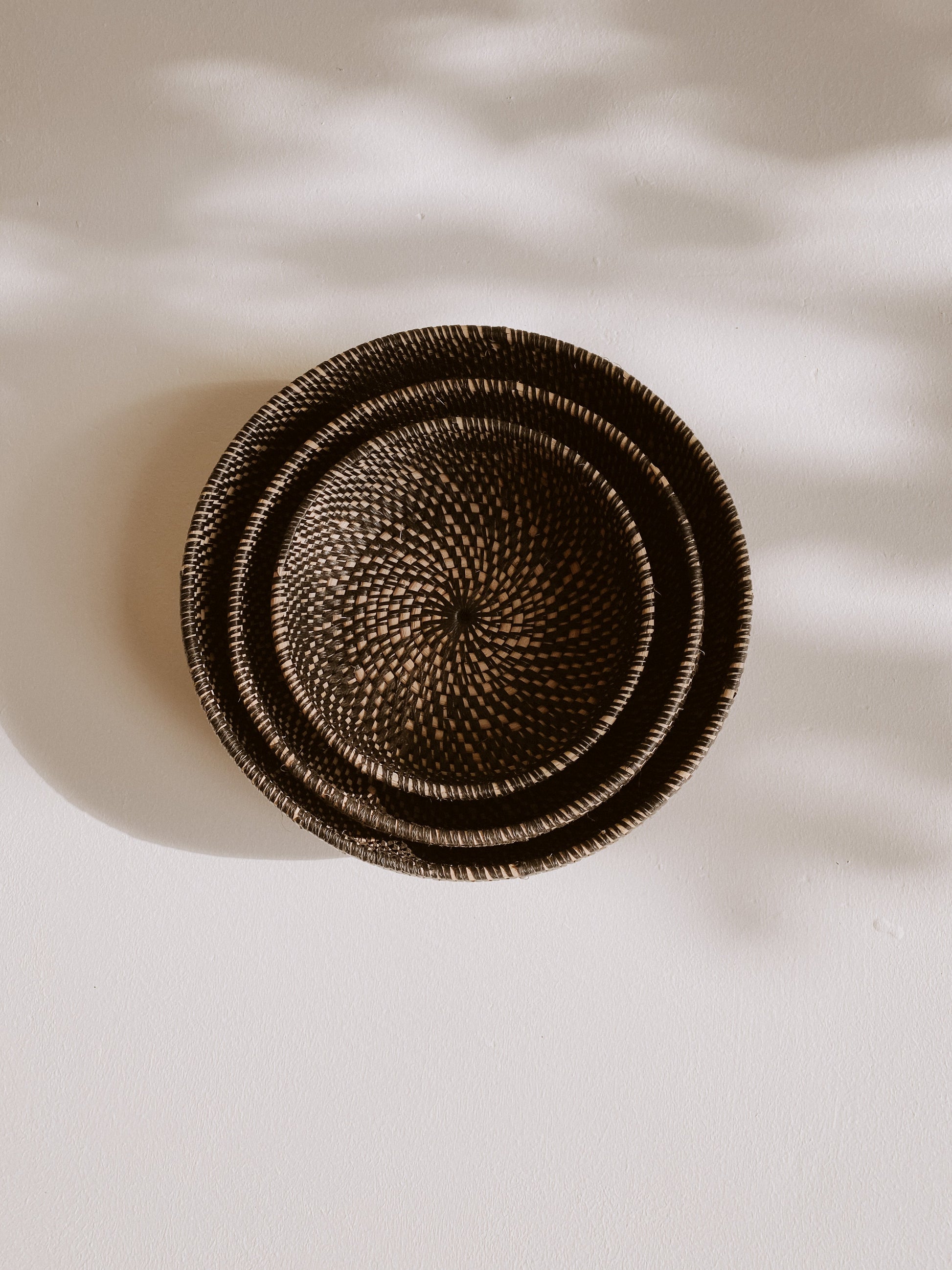 This three piece set rests inside each other for easy storage and when in use creates cohesiveness throughout your space. Made from natural and recycled materials.
