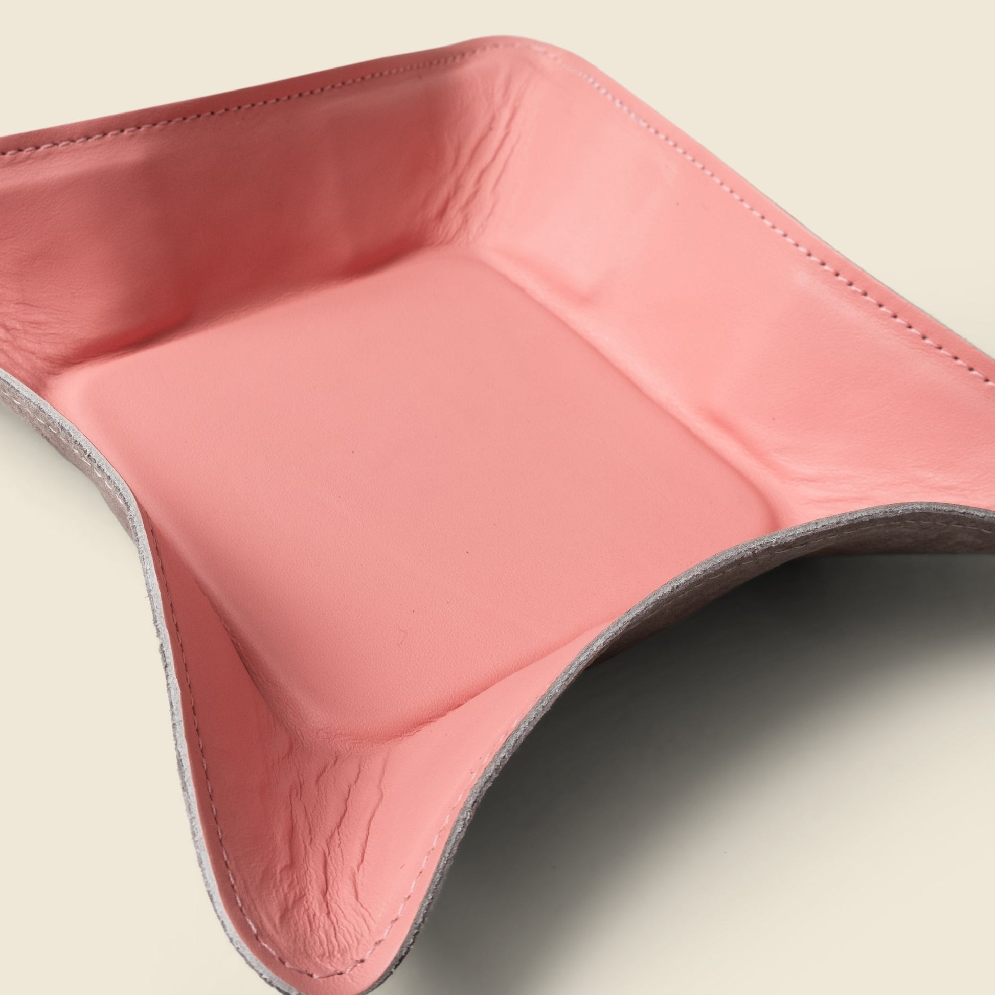 This is the home base for your keys, coins, watch or jewelry. Make an elegant statement on your table at home or while traveling. The pliable metal corners allow you to lay it flat for travel, or bend it into shape for holding your personal items. This premium full grain leather with a smooth and glossy finish. This leather will become smoother and slightly darker with time and wear.