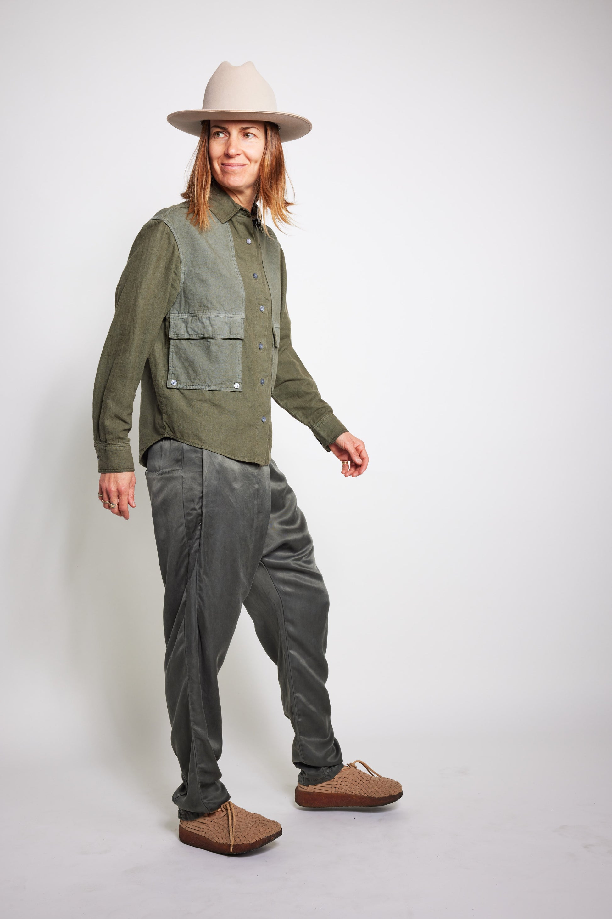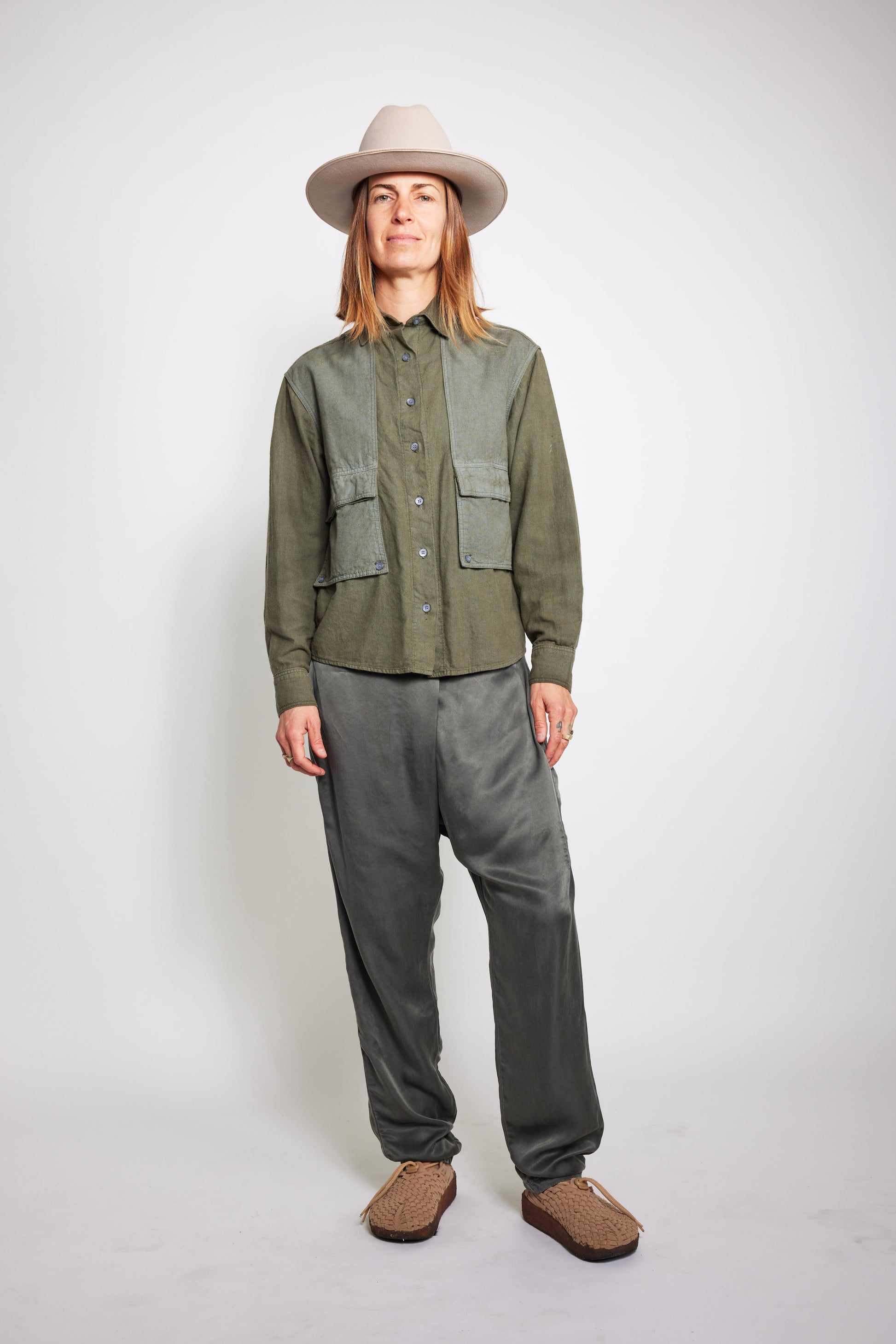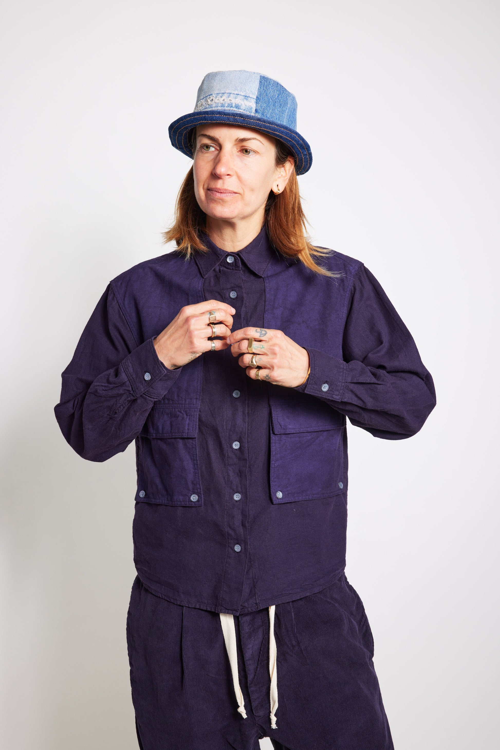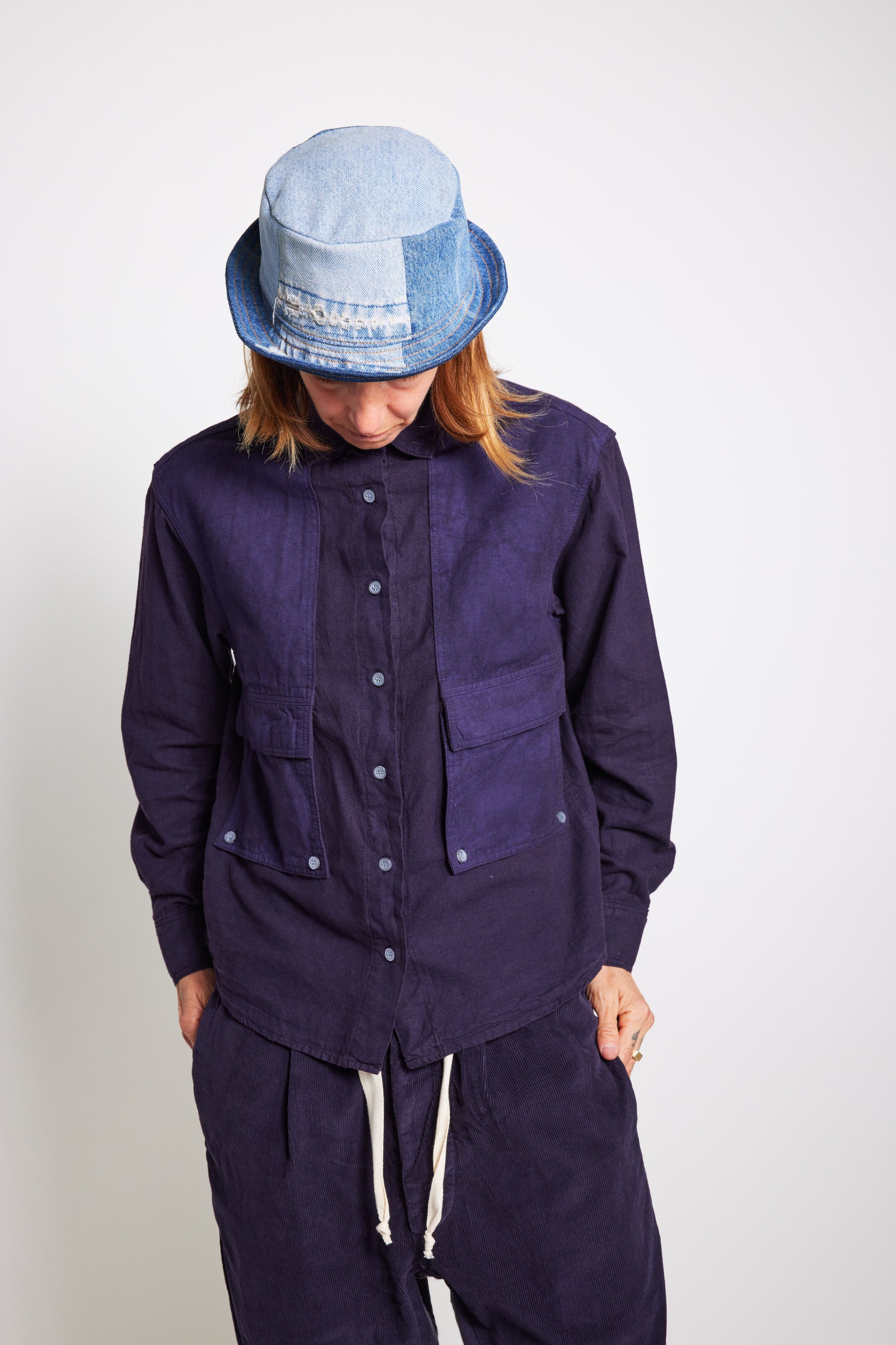 Unisex Soft Organic Hemp Cotton woven shirt with contrast Rip Stop fabric detail. Offering a traditional style button down shirt with boxy style fit, chest pocket accents, and standard collar.
