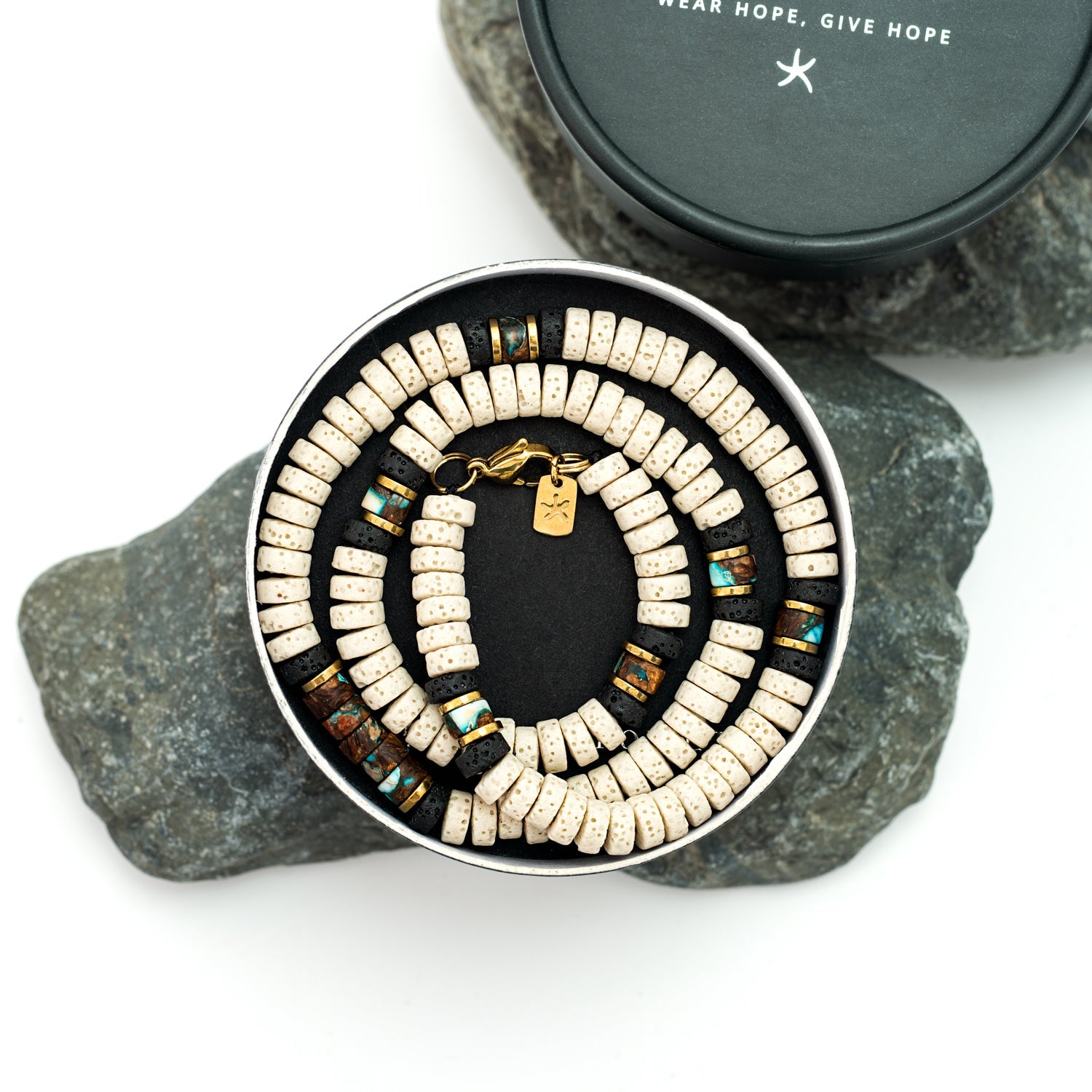 Designed to be a symbol of confidence and power, the Vanguard Lava Bead Necklace adds a rugged yet refined edge to any look. Whether worn as a statement piece or layered with other favorites. As part of the Starfish Project collection, your purchase restores hope to survivors on their journey to freedom, providing them with opportunities for a new beginning. Wear or gift the Vanguard Lava Bead Necklace and carry a reminder of strength and leadership, knowing your choice makes an impact.