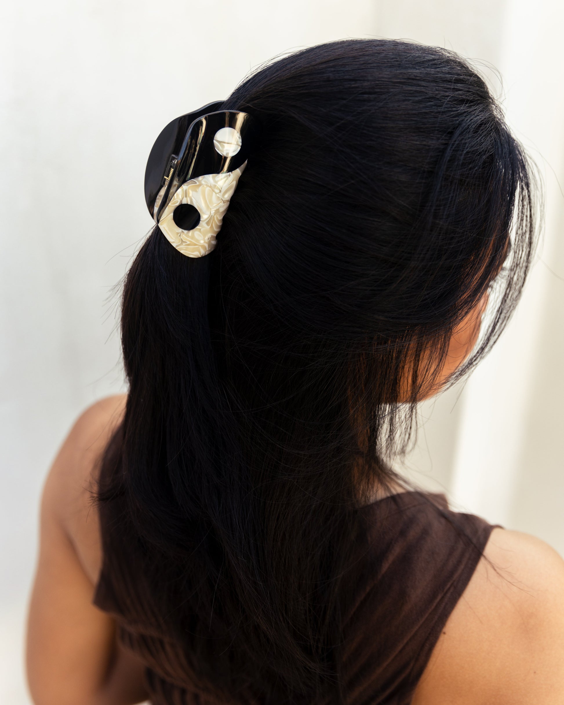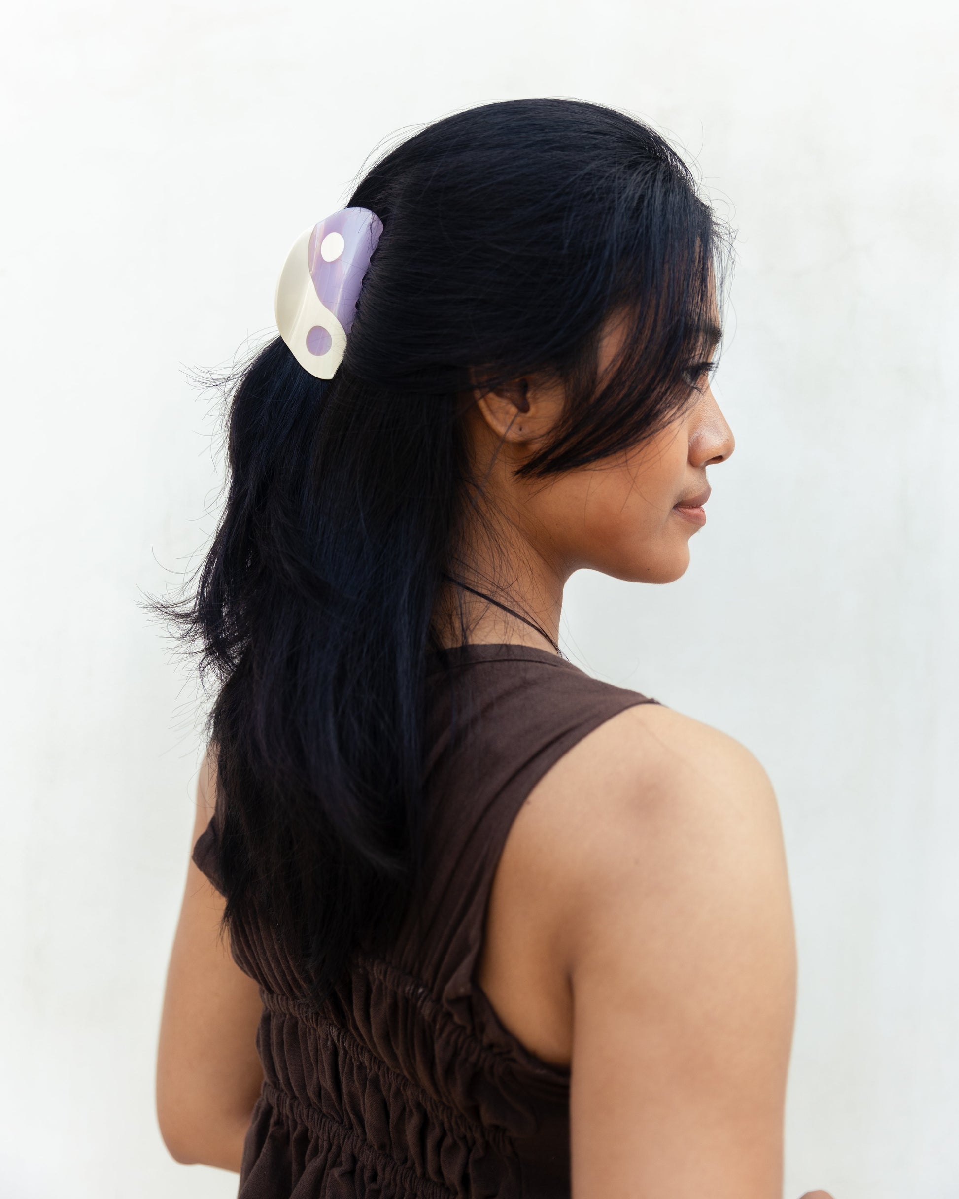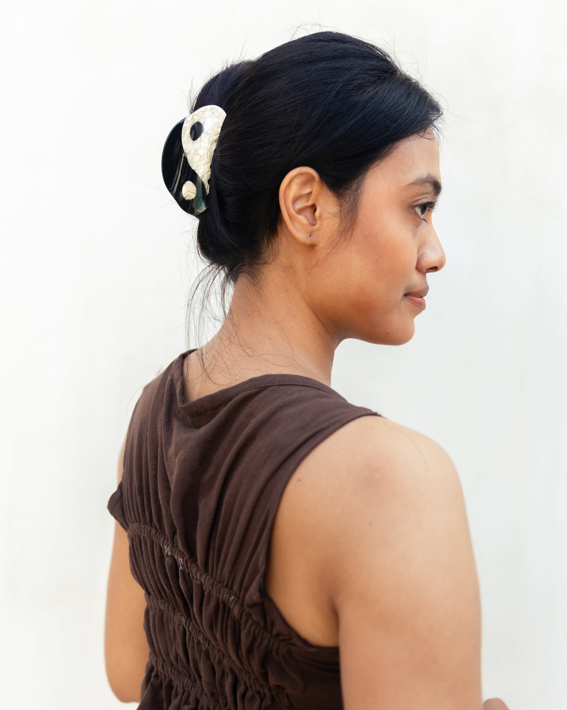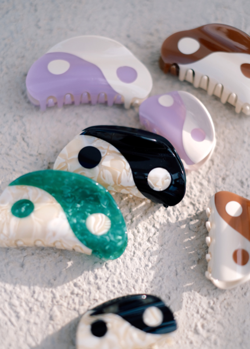 Add a unique flair to your hairstyle with our Yin Yang Hair Clips. Made from recycled acetate, these hair clips feature a fun and unique yin yang design in three colorways. An eye-catching accessory that makes a statement.